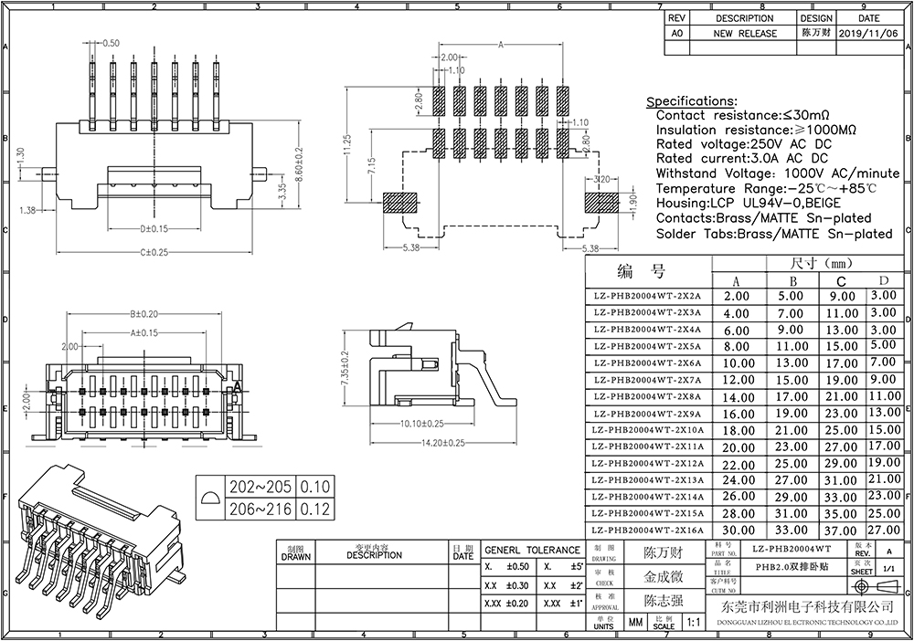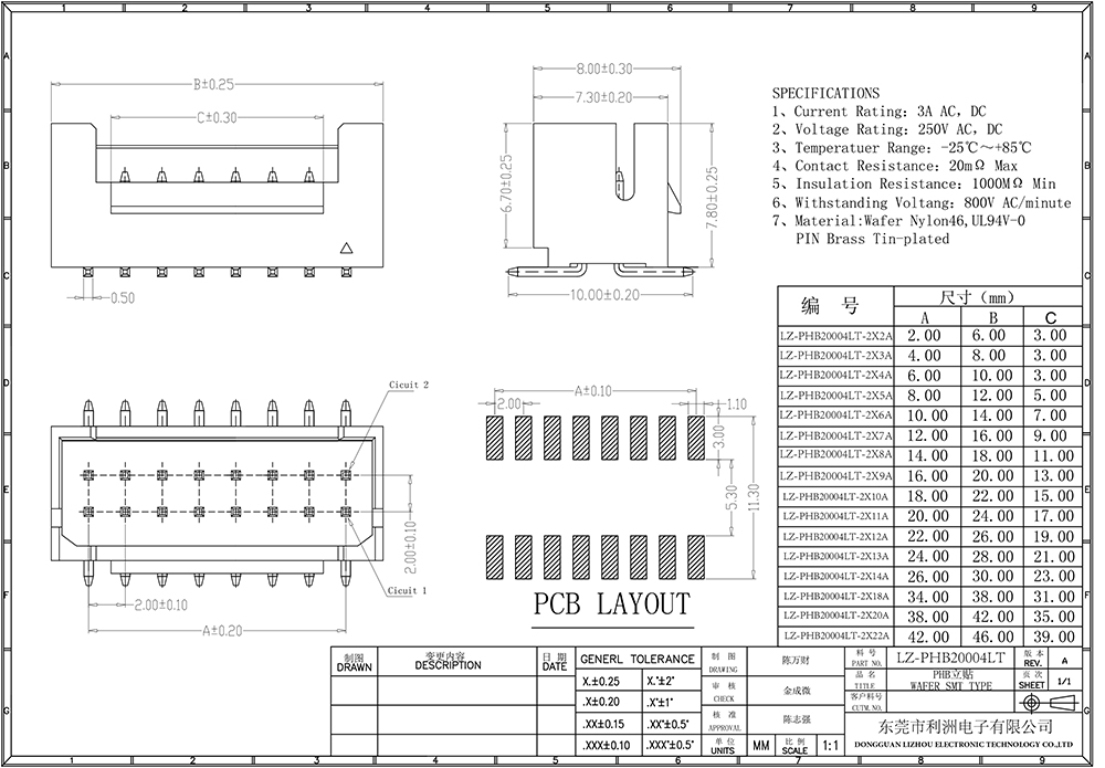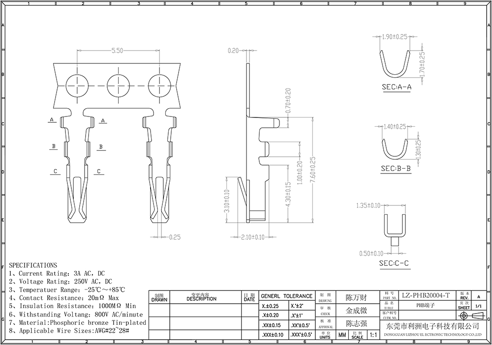 Contact resistance: 20mΩ Max