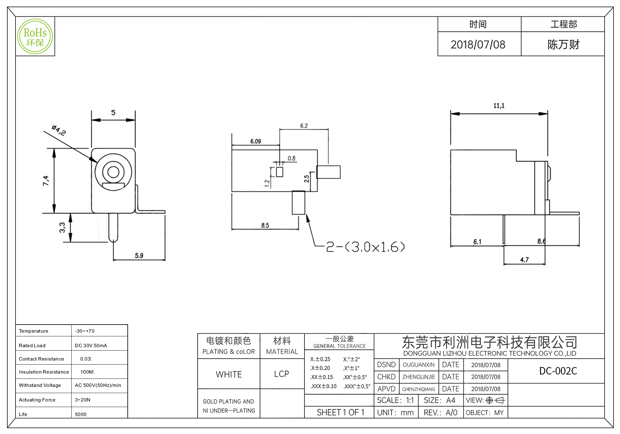 Contact resistance : 0.03: