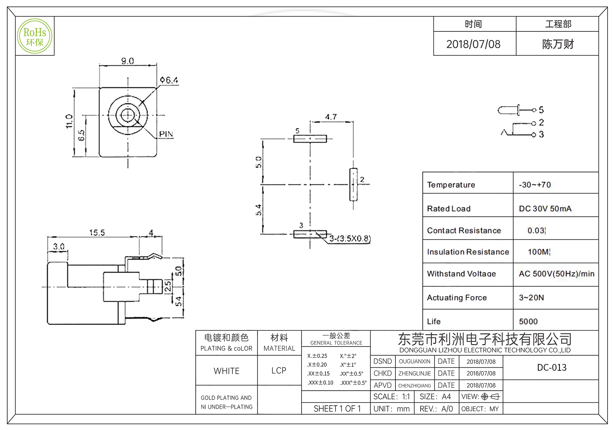 rated load: DC 30V 50mA