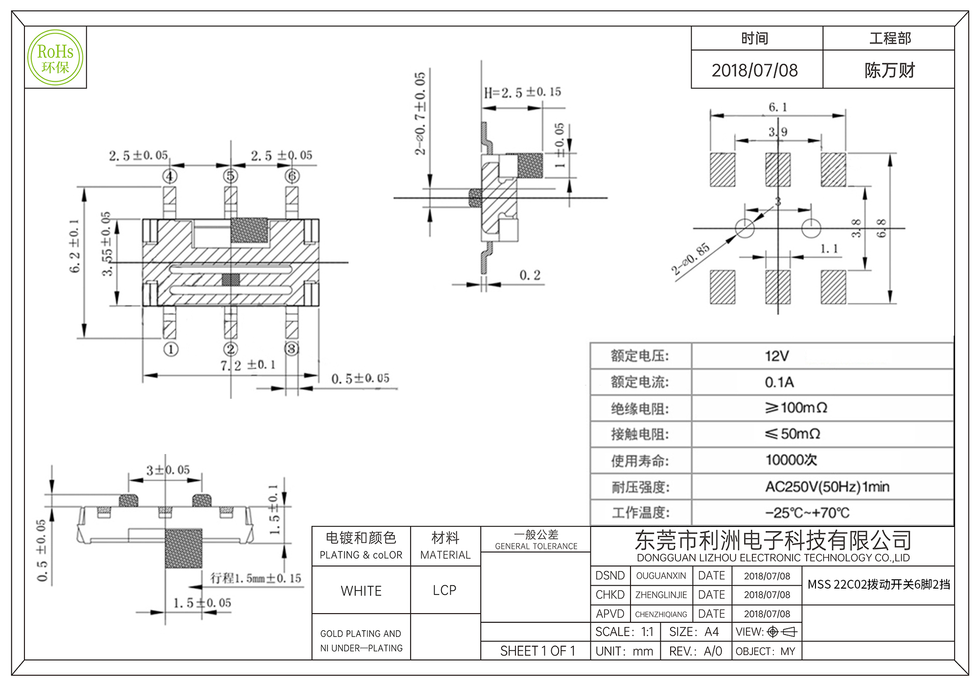 • MSS-22C02拨动开关6脚2挡