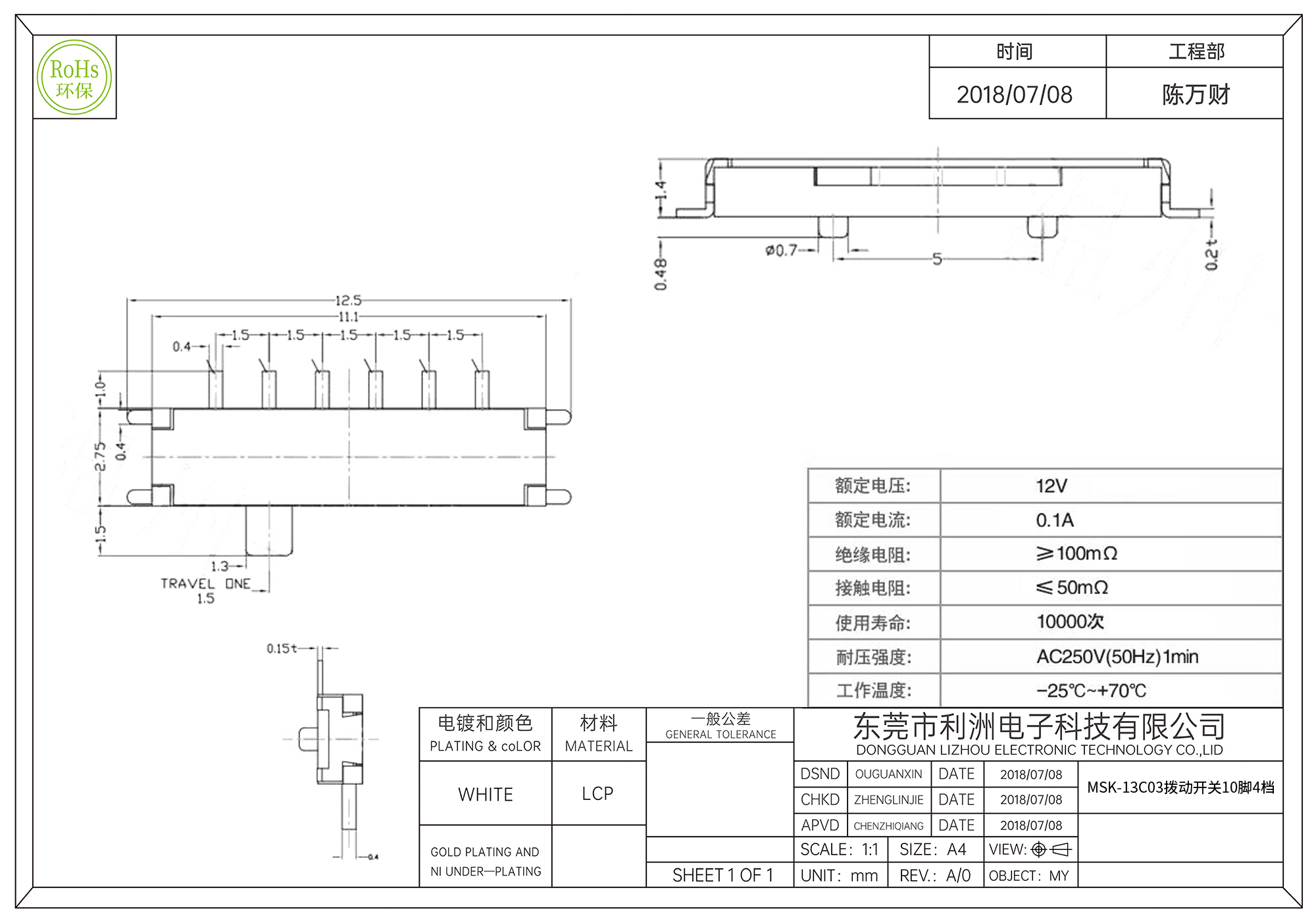 Contact resistance: ≤50mΩ