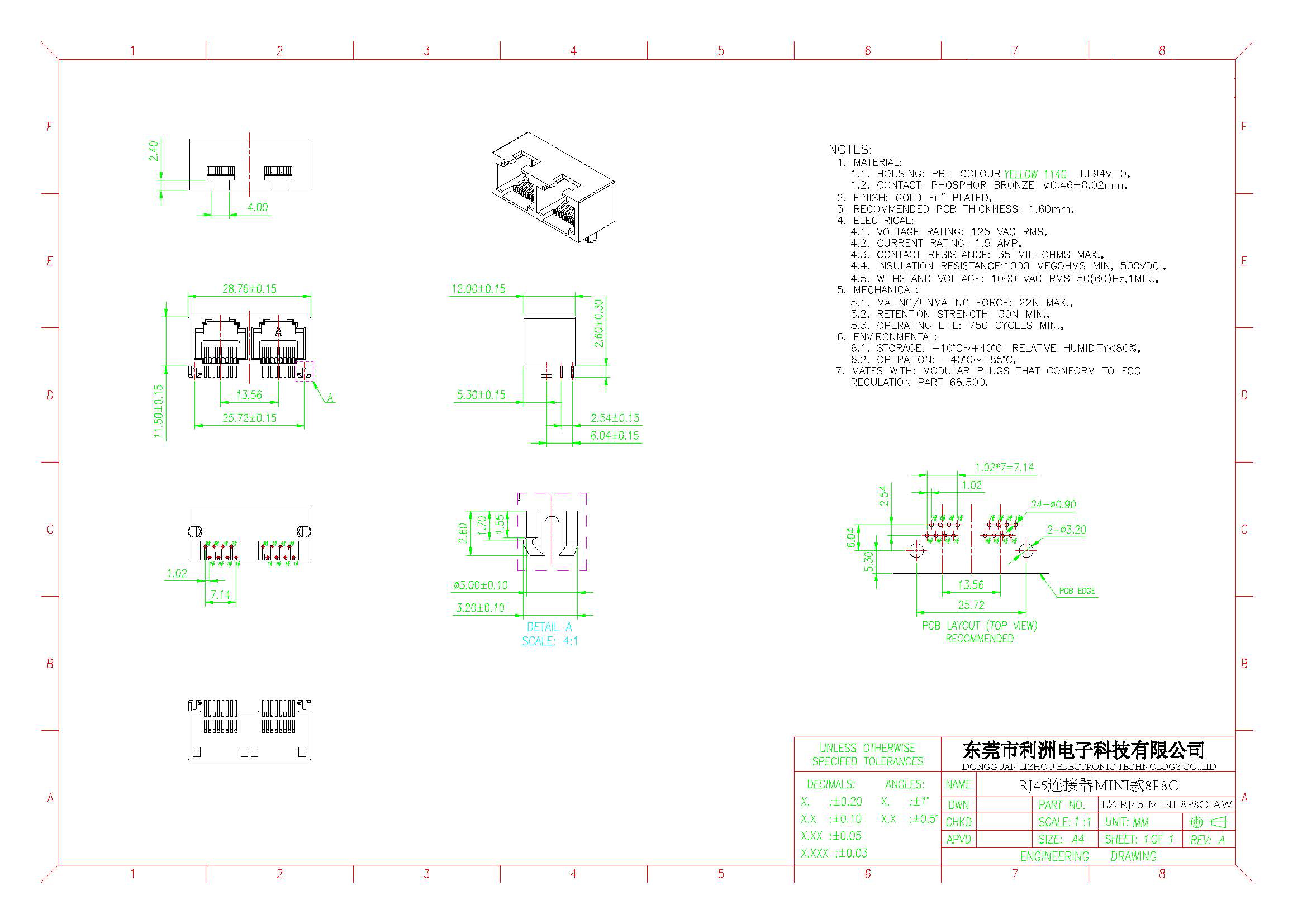 RJ45连接器MINI款8P8C