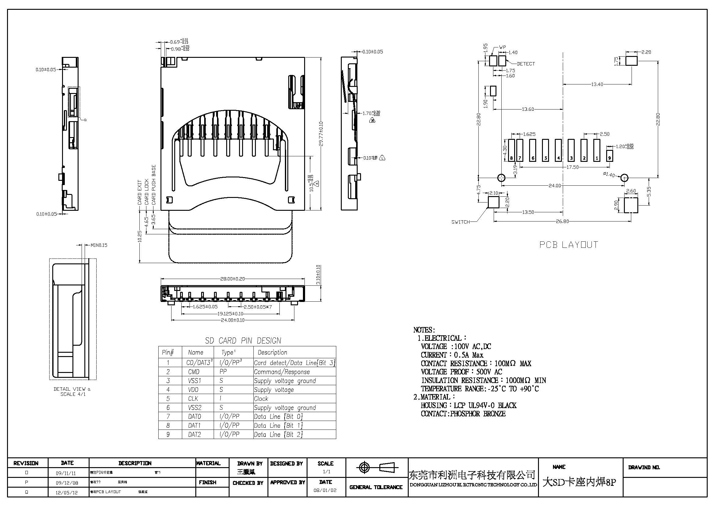 大SD卡座内焊8P