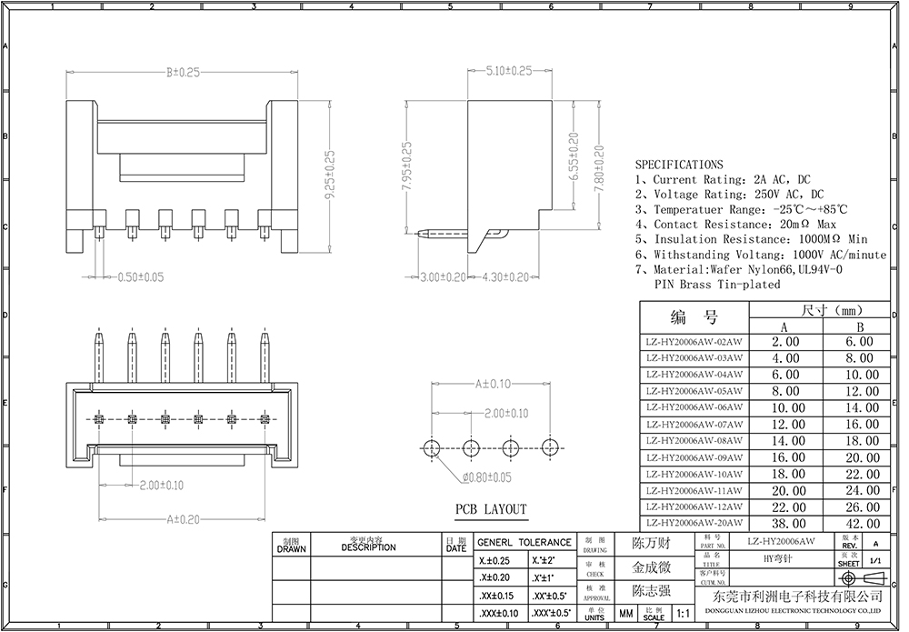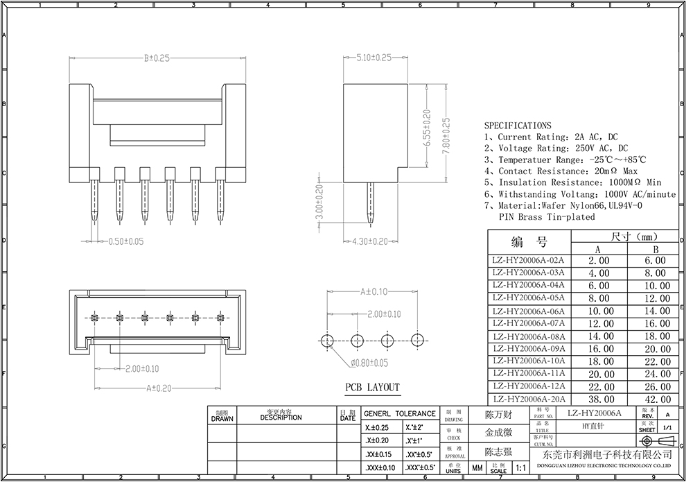 Contact resistance: ≥20mΩ Min