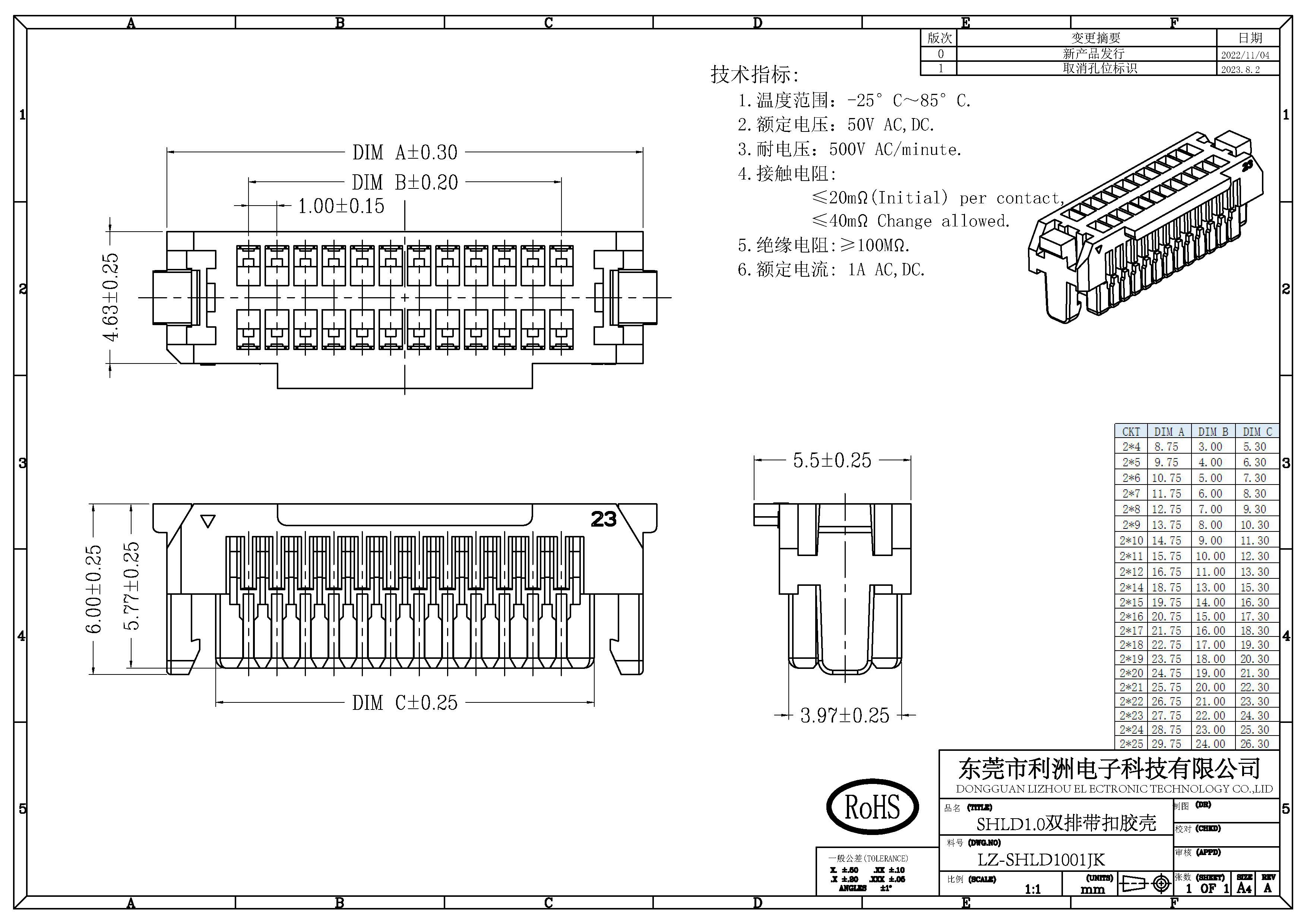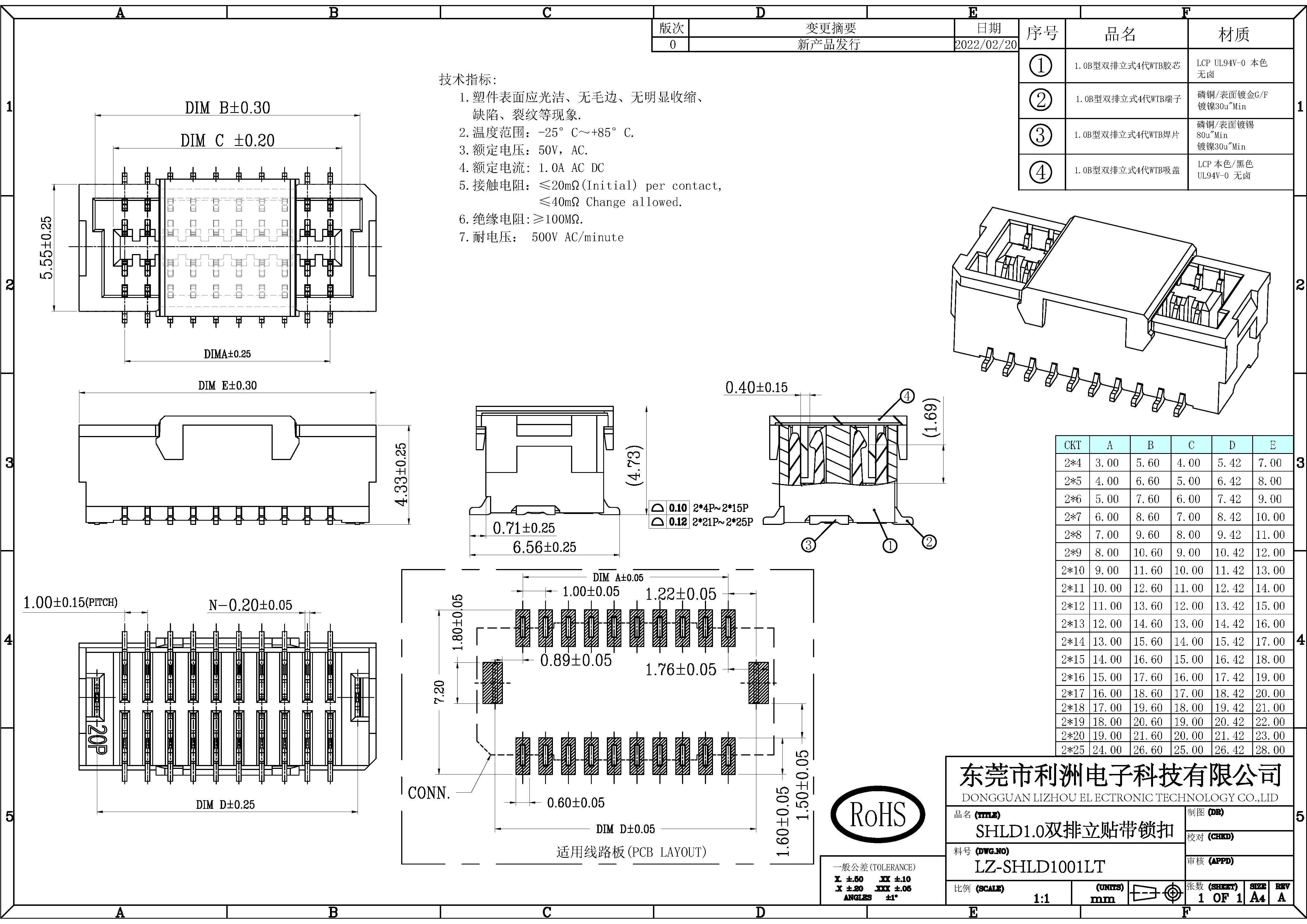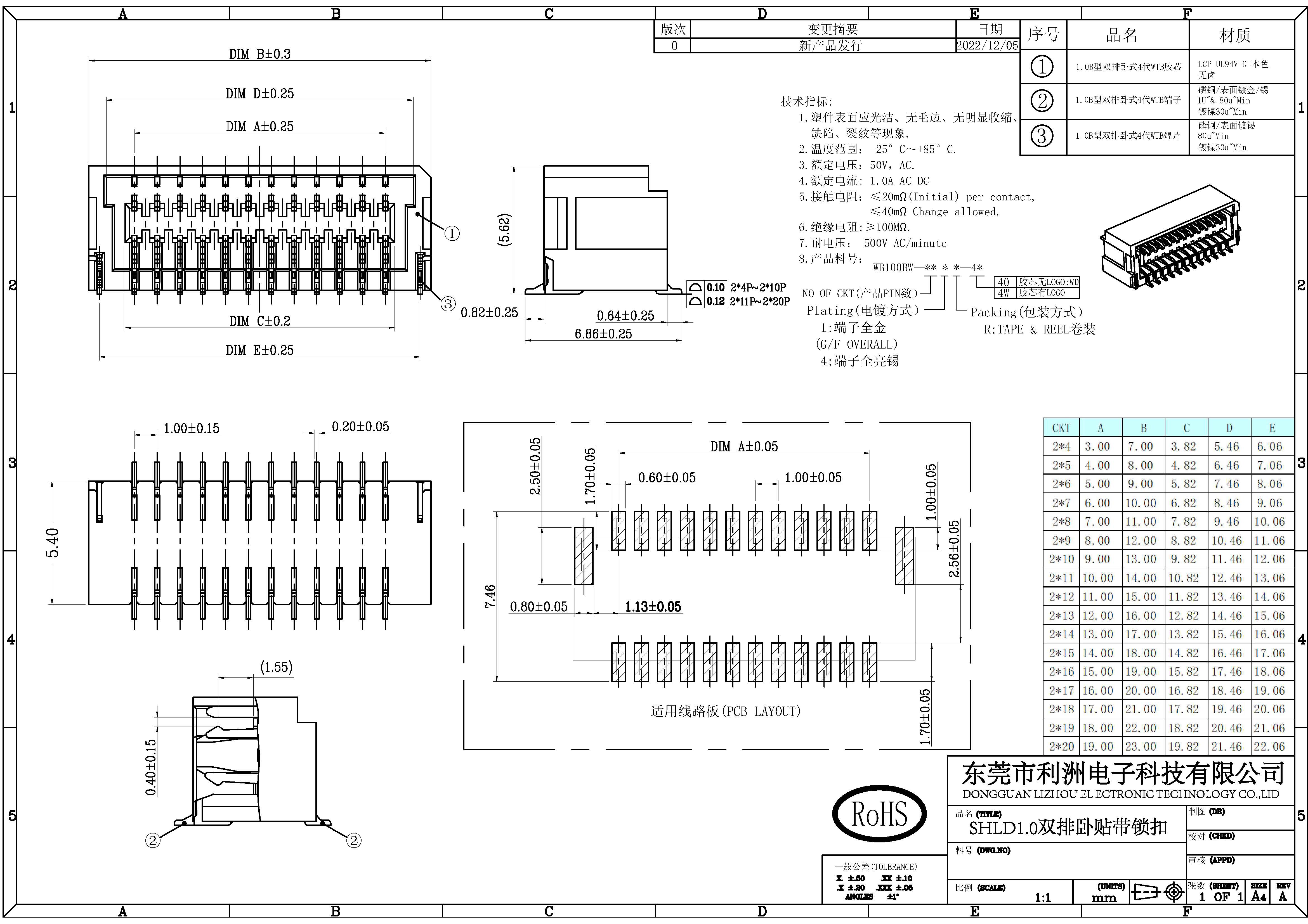 Contact resistance: ≤20mΩ(Initial)per contact ≤40mΩ Change allowed