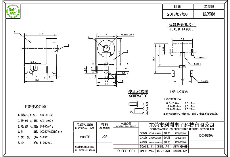 Contact resistance: ≤50Ω