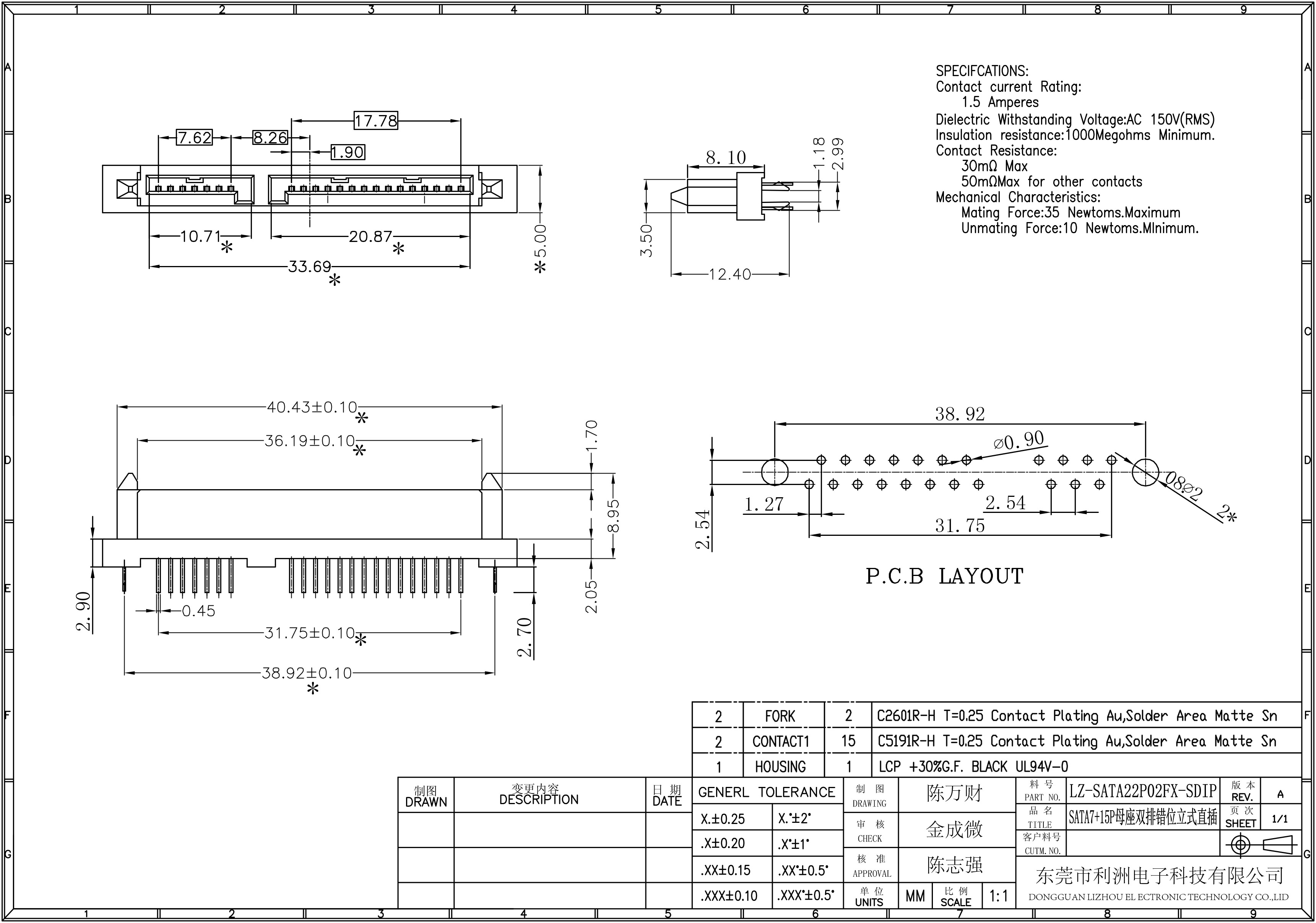 SATA7+15P母座双排错位立式直插