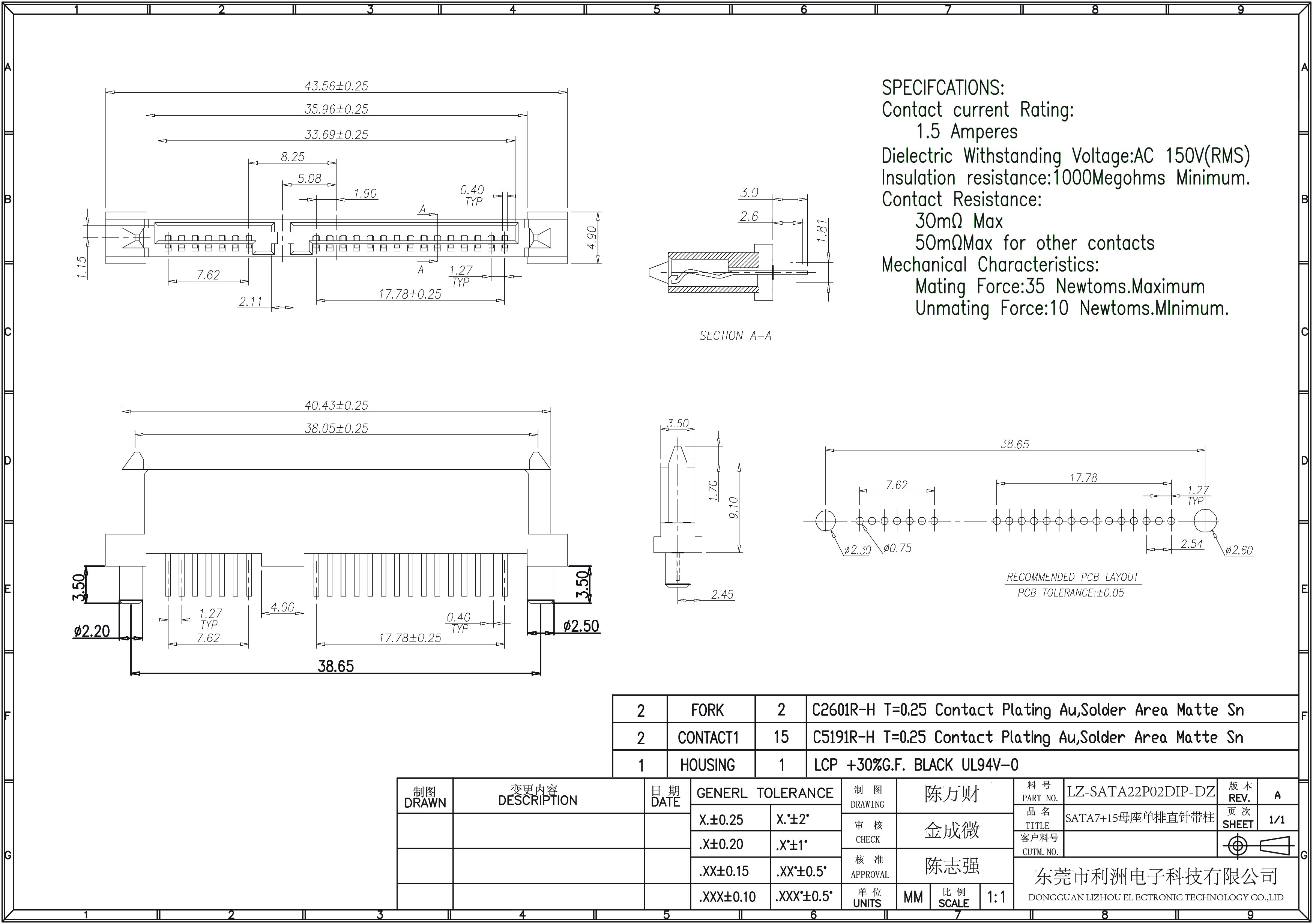 Insulation resistance: 30mΩ Max 50mΩ Max for other contacts
