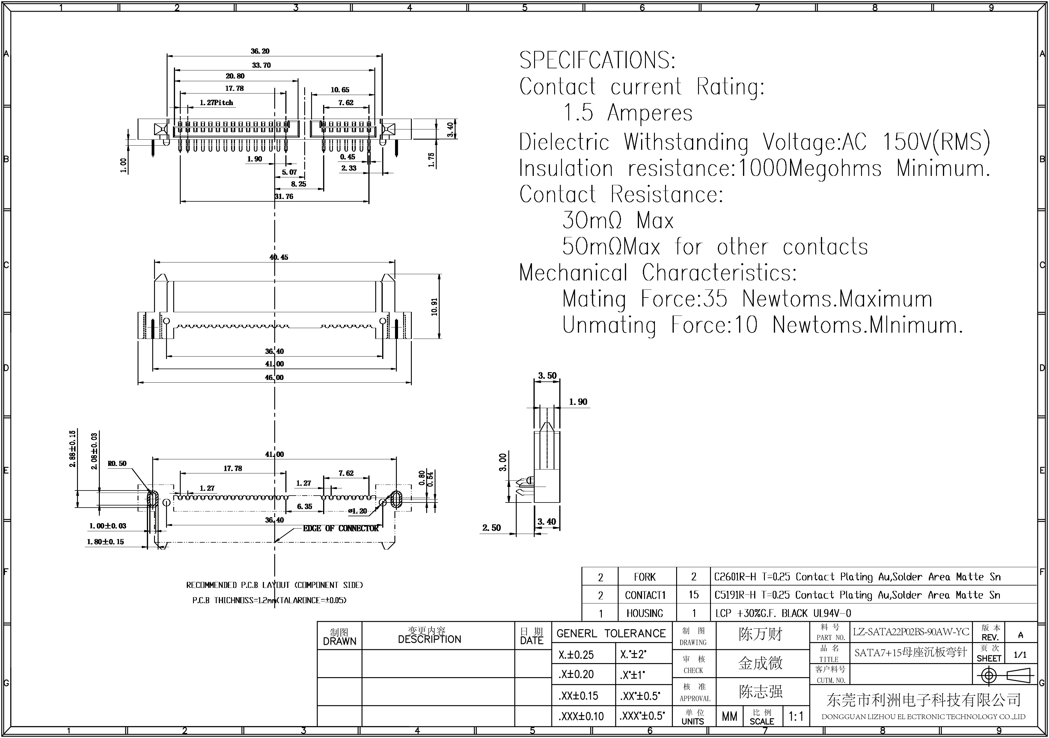 Contact Resistance: 30mΩ Max 50mΩ Max for other contacts