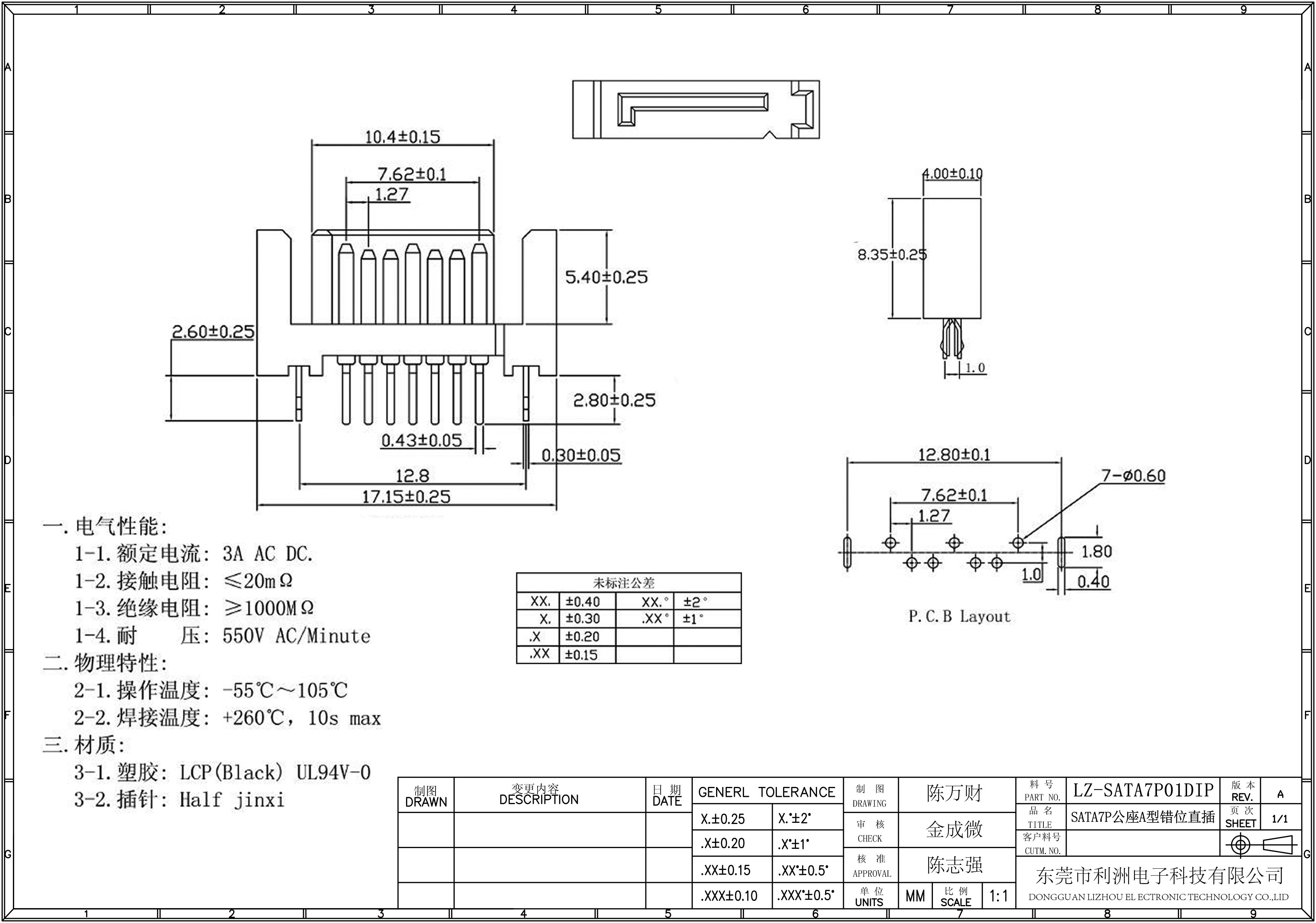 SATA7P公座A型错位直插镀金