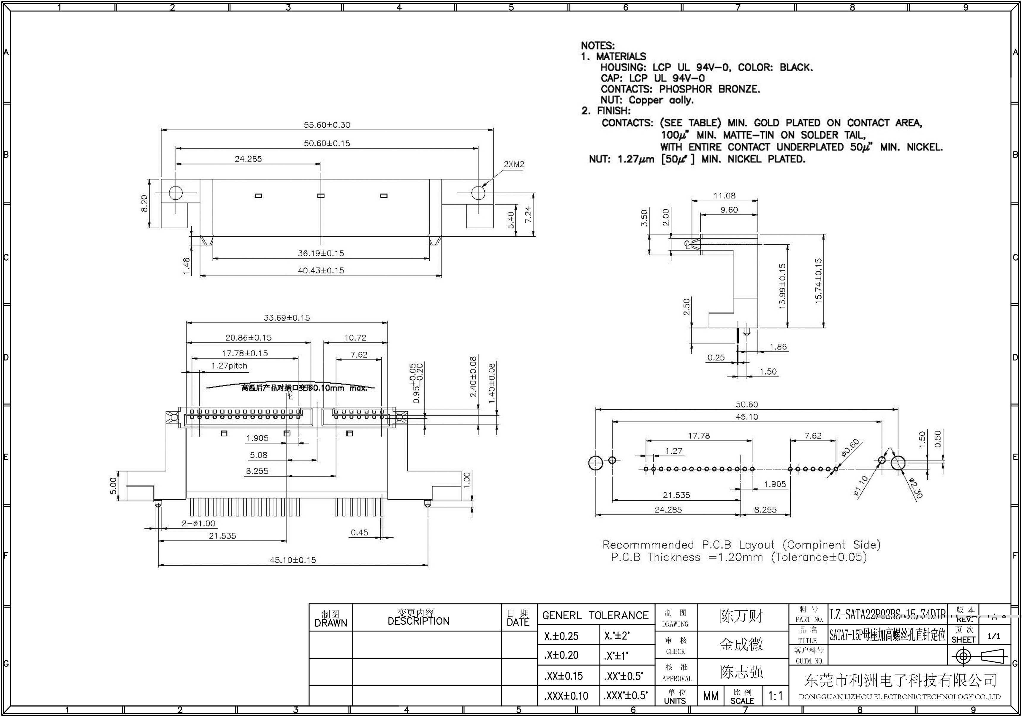 Finish Contacts: (See table)min gold plated on contact area, 100u"min matte-tin on solder tail