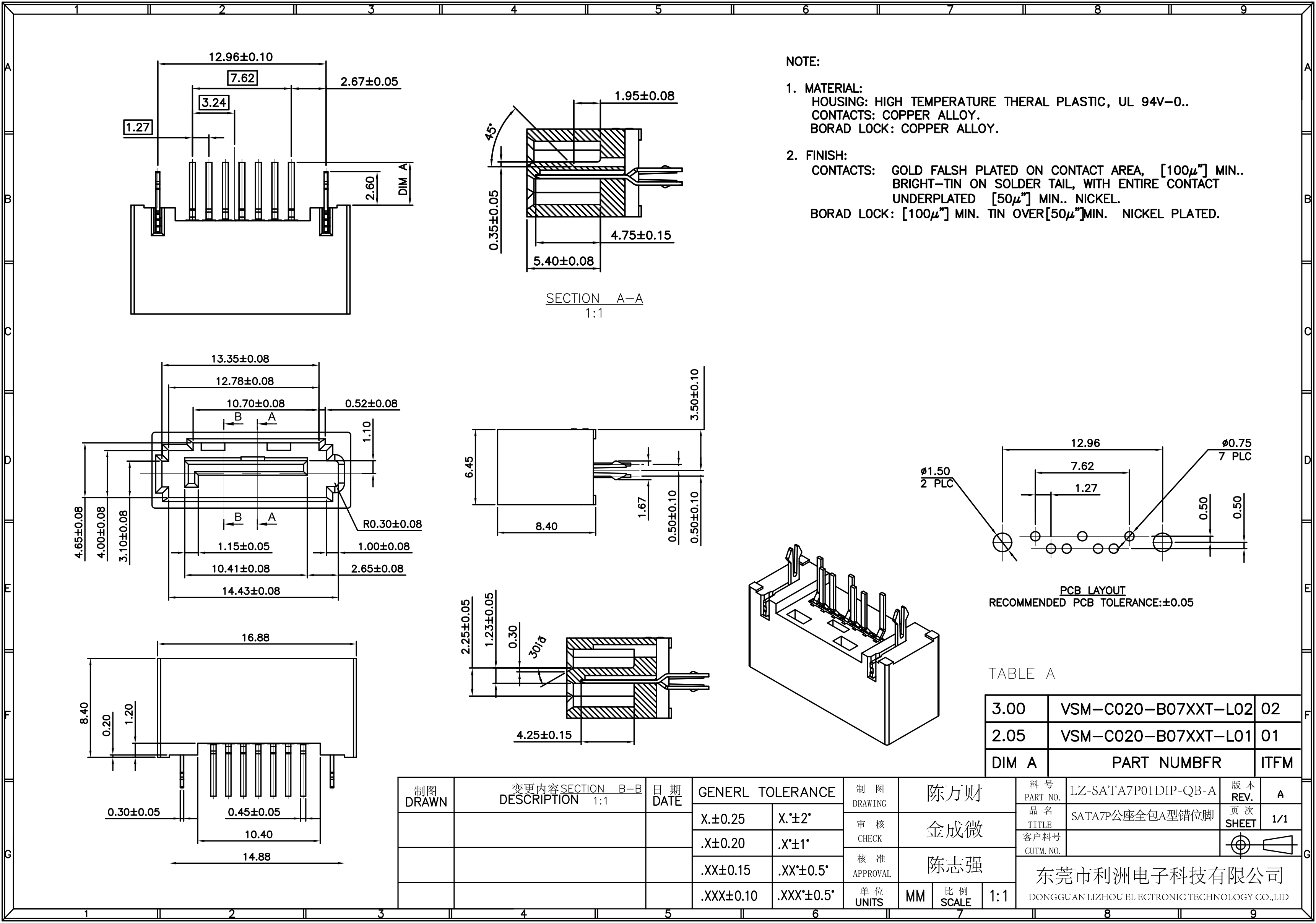 Finish Contact: gold falsh plated on contact area [100"]min bright-tin on solder tail with entire with entire contact underplated [50u"]min nickel