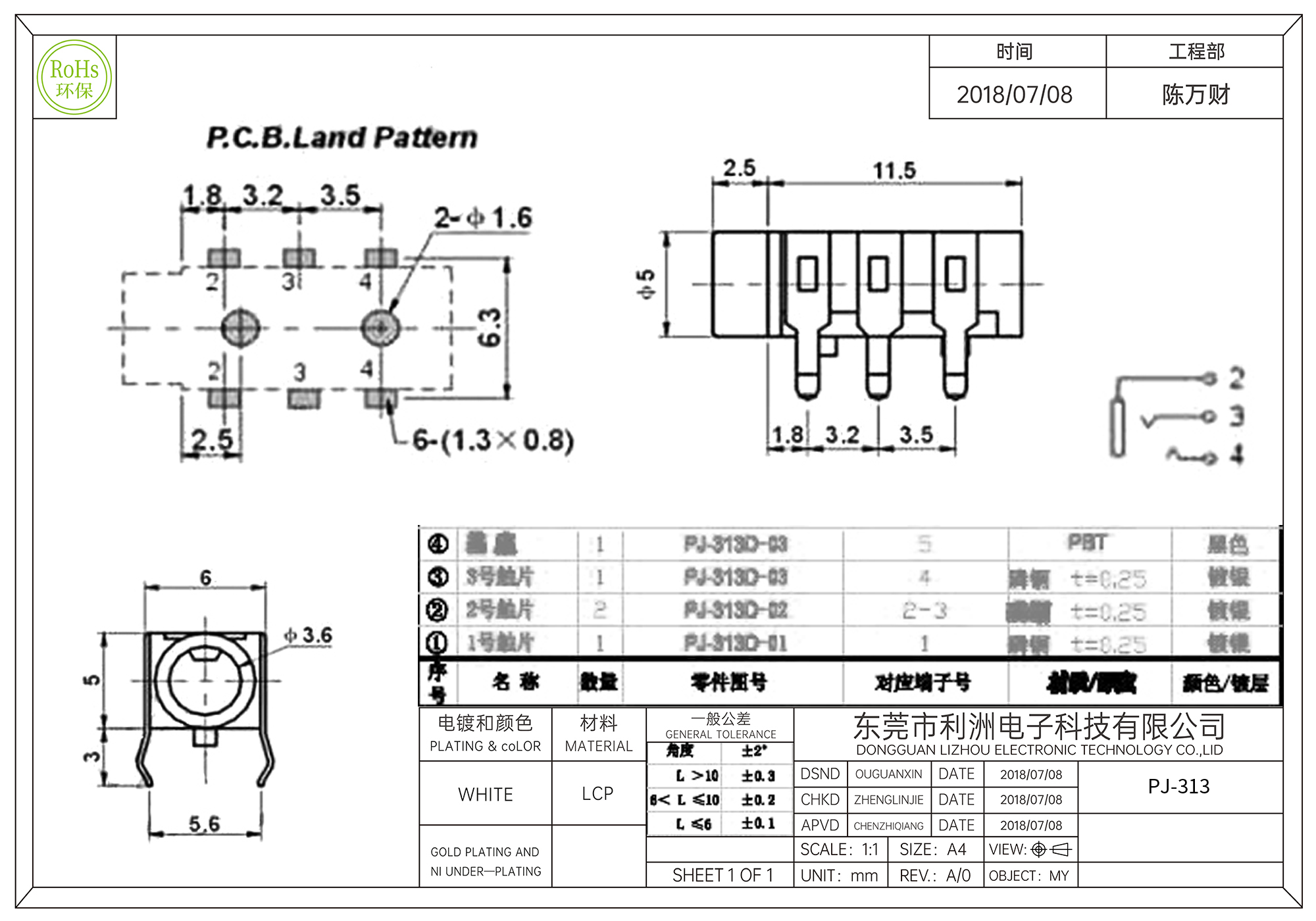 PJ-313耳机插座3.5mm六脚插件