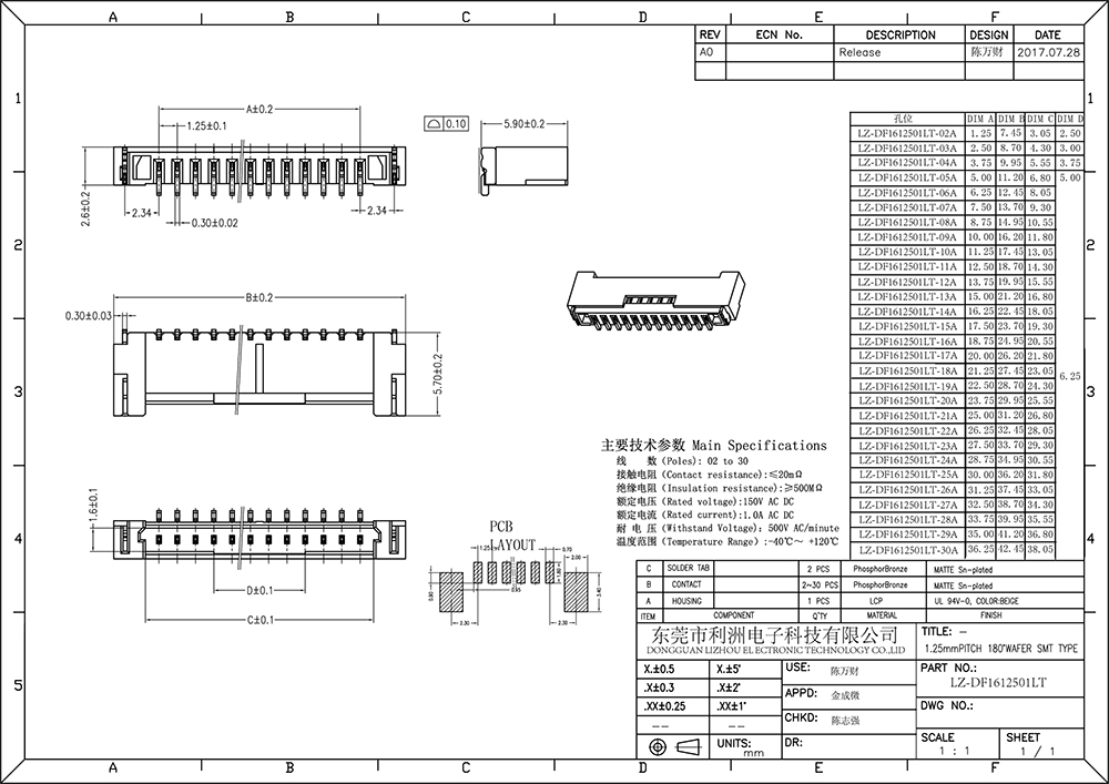 DF16连接器1.25mm间距系列