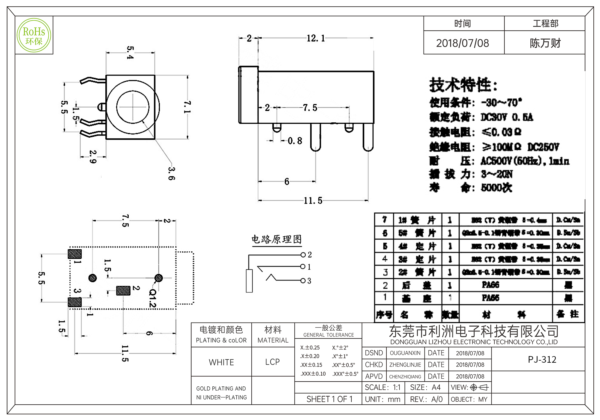 PJ-312耳机插座3.5mm三脚插件