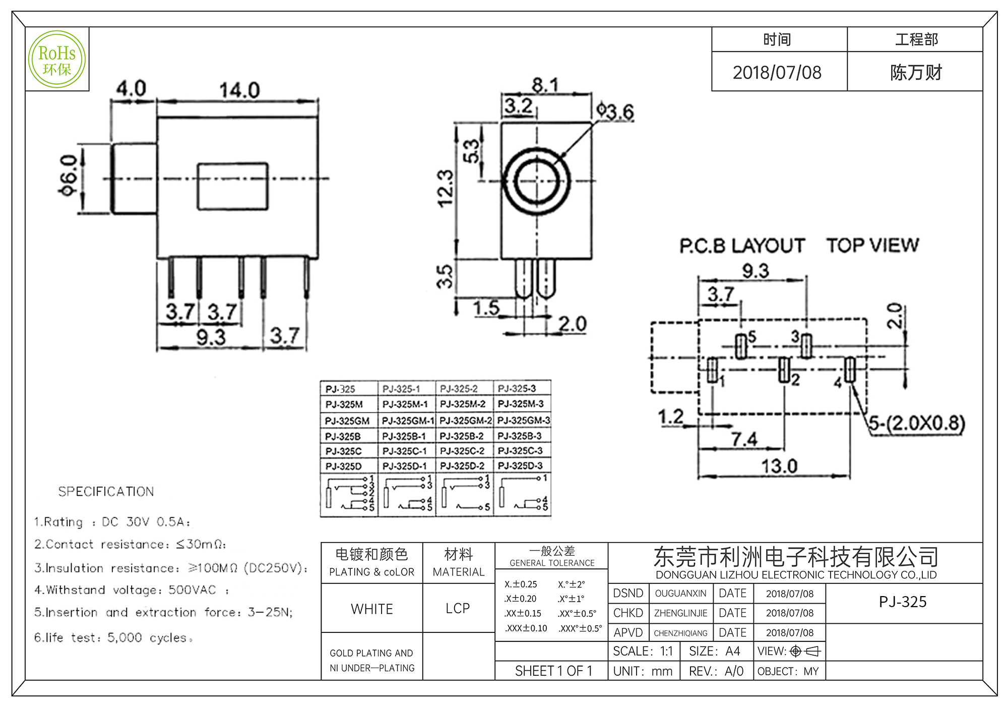 PJ-325耳机插座3.5mm五脚插件