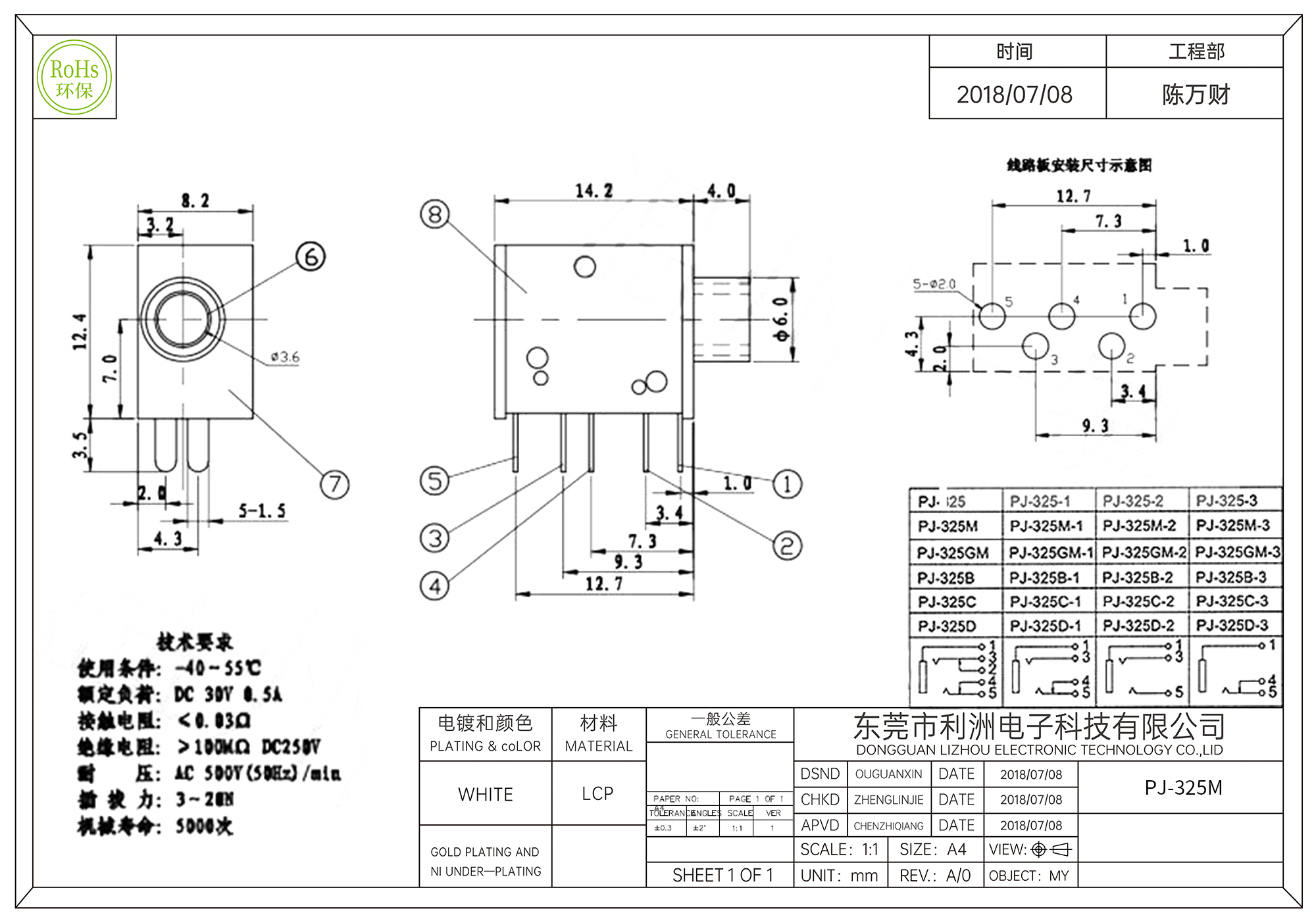 PJ-325M耳机插座3.5mm五脚插件带螺纹