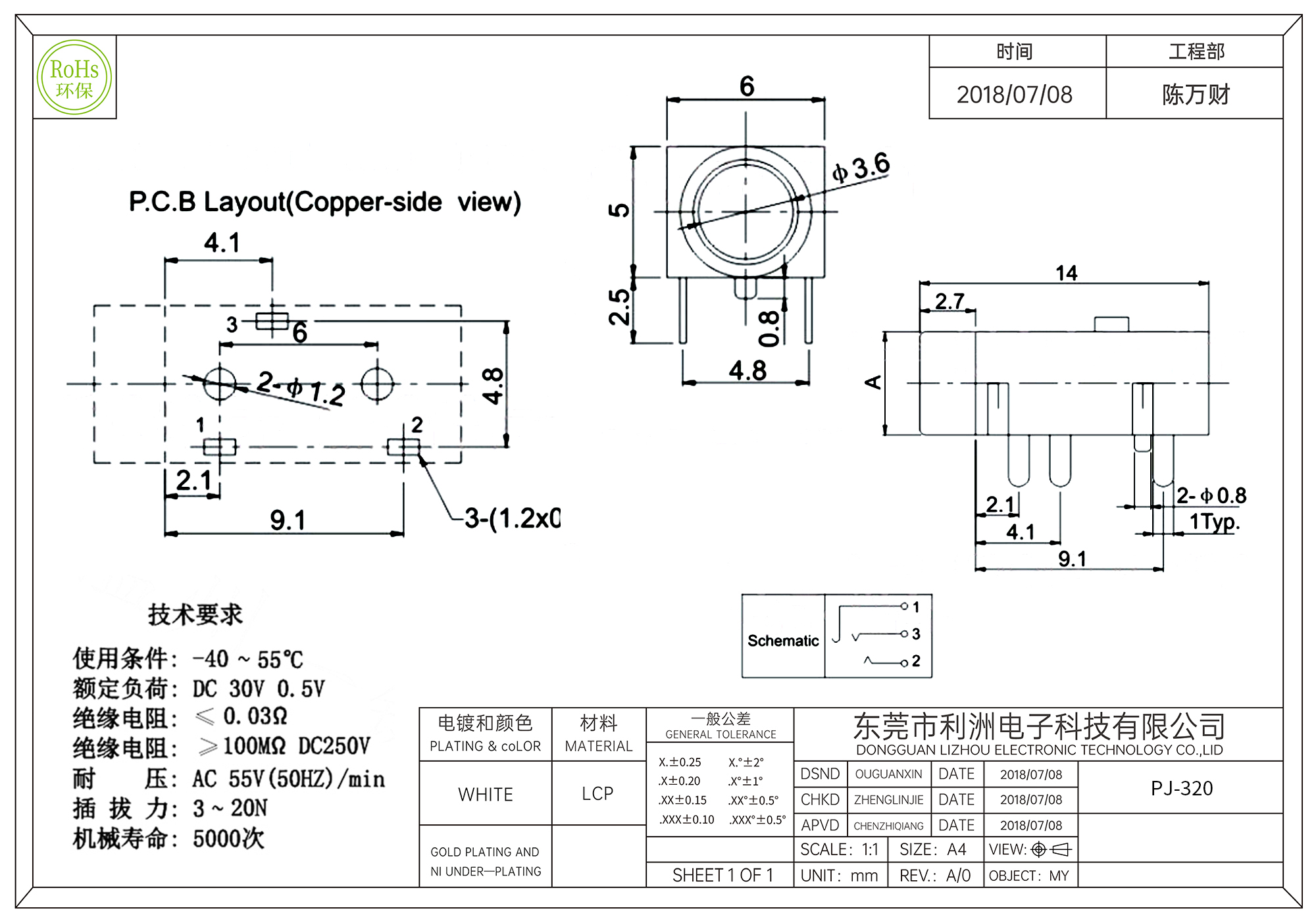 PJ-320耳机插座3.5mm针芯三脚插件