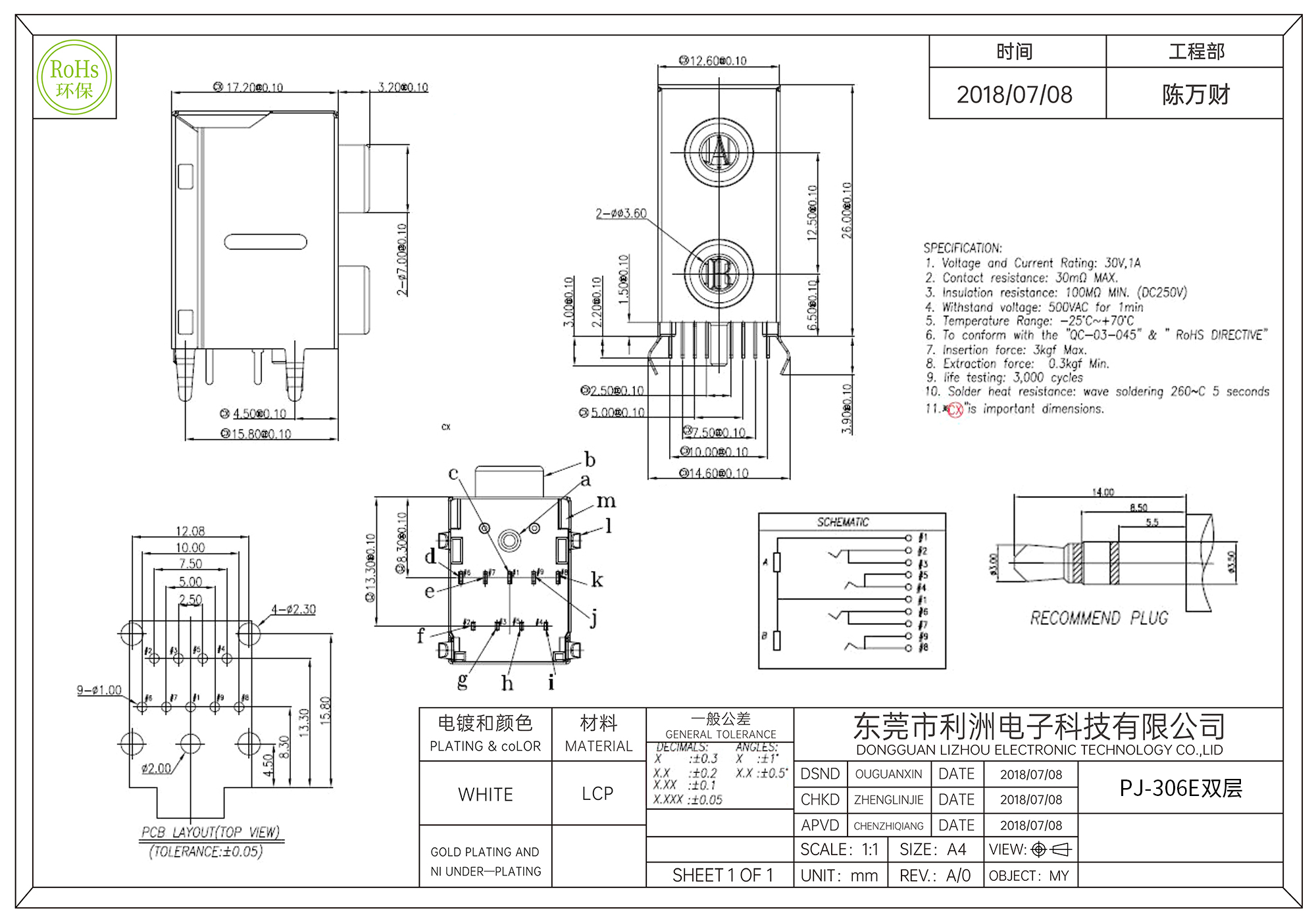 PJ-306E耳机插座3.5mm双层