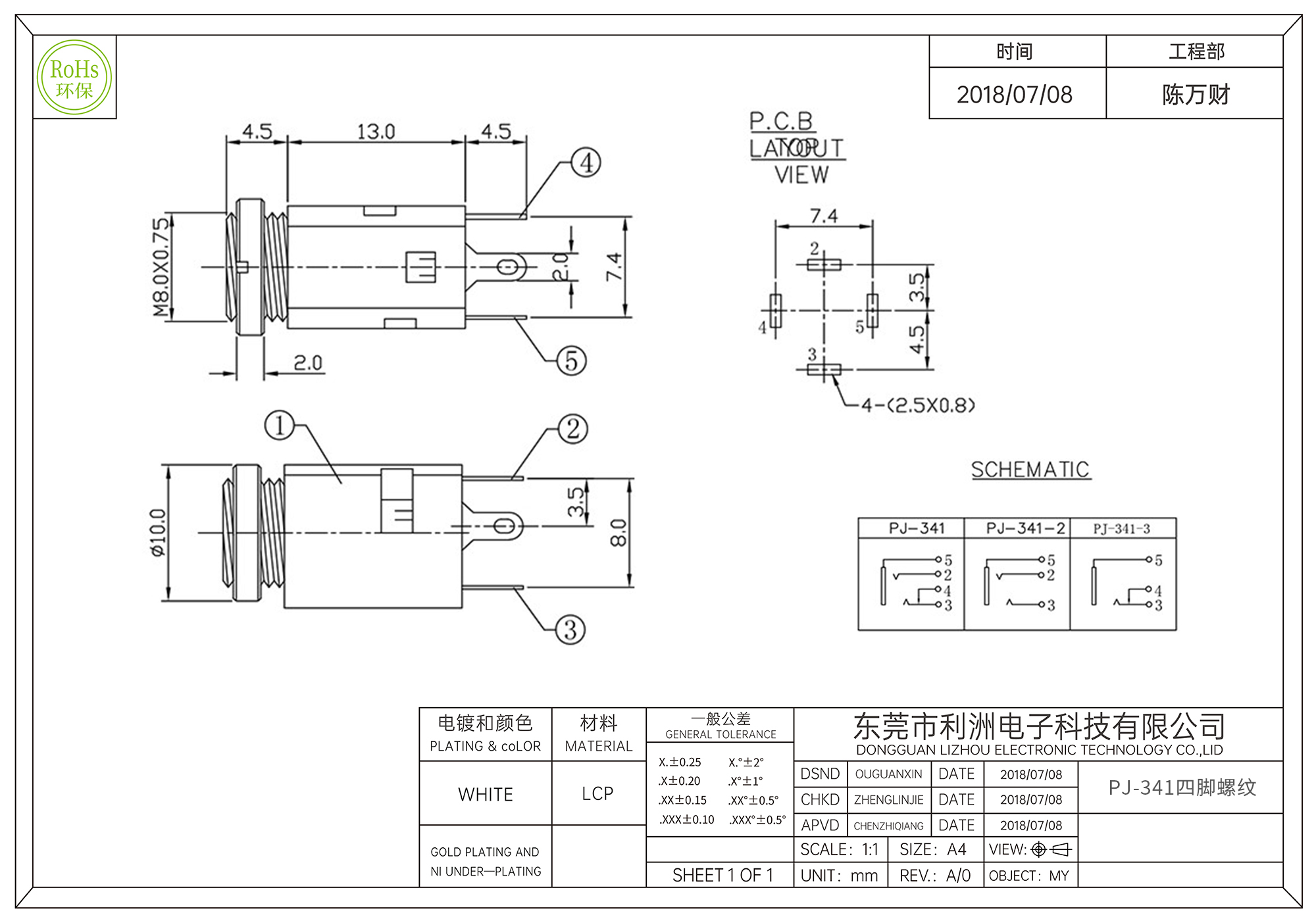 • PJ-341耳机插座3.5mm四脚带螺纹