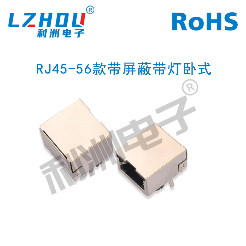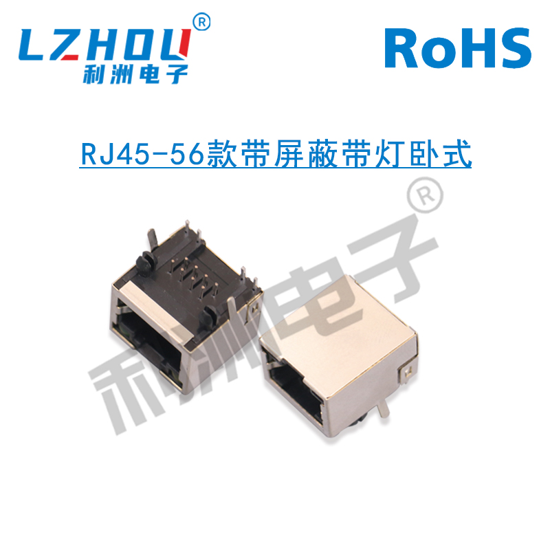 • RJ45网络插座56-8P8C带灯带屏蔽卧式RJ45网口连接器水晶头RJ母座