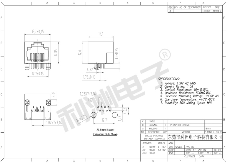Durrability: 500 Mating Cycles MIN