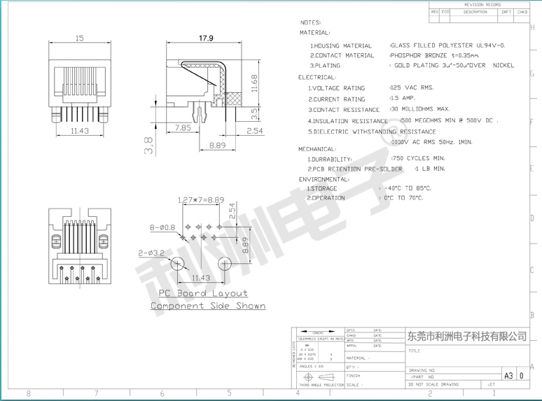 RJ45网络插座母座RJ网口插座58款10P8C全塑以太网接口连接器