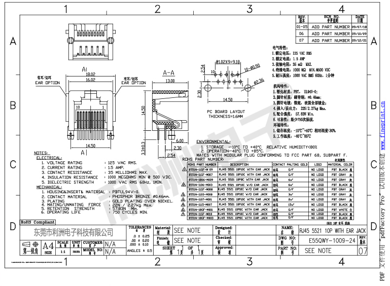 RJ45网络插座RJ11/12 全塑 10P10C 带边母座水晶头电话机插座