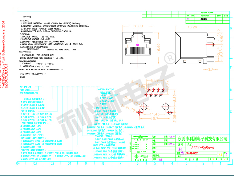 RJ45网络插座52款8P8C无灯带屏蔽5224立式直插RJ45网口连接器母座
