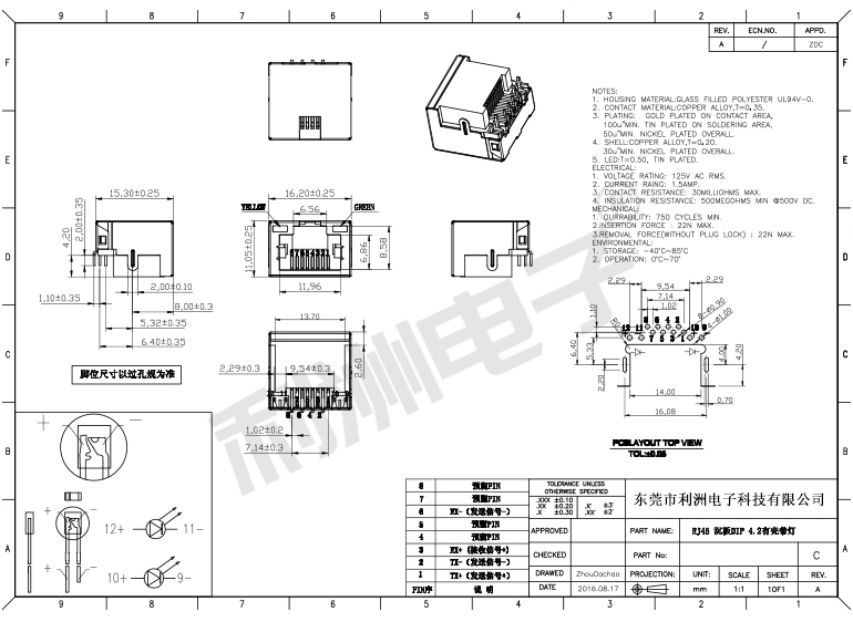 RJ45-沉板带屏蔽带灯H=4.2