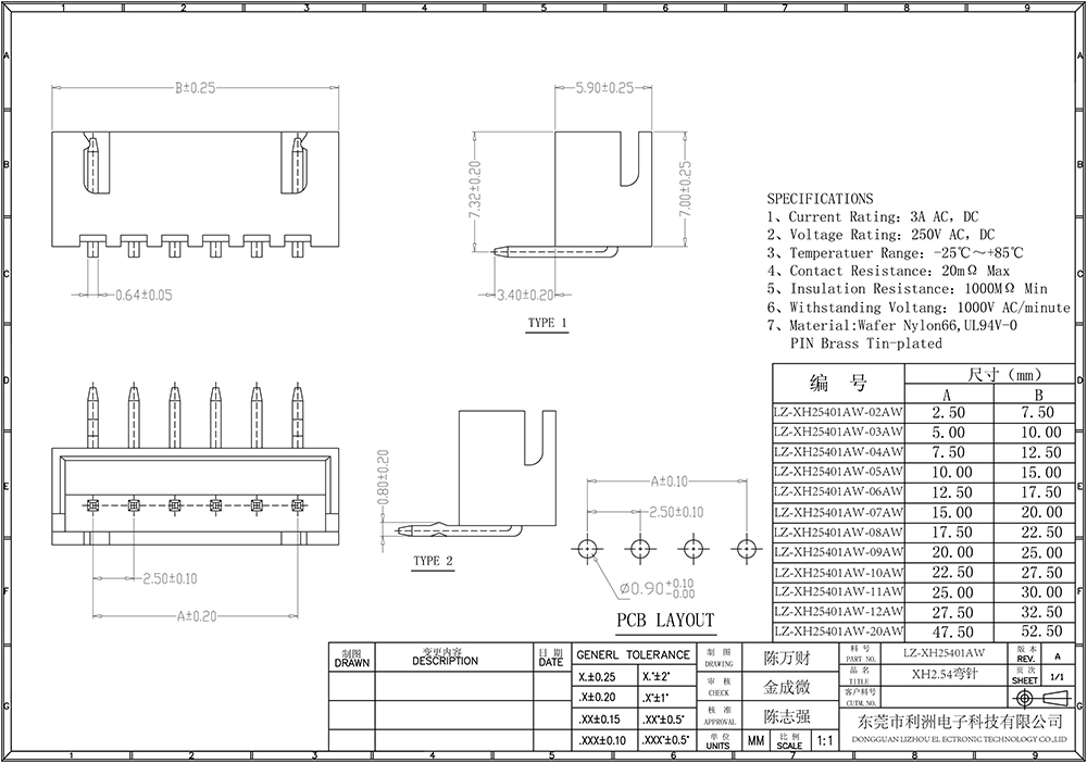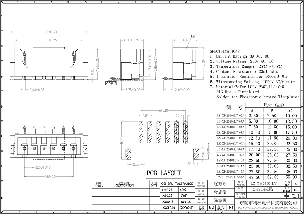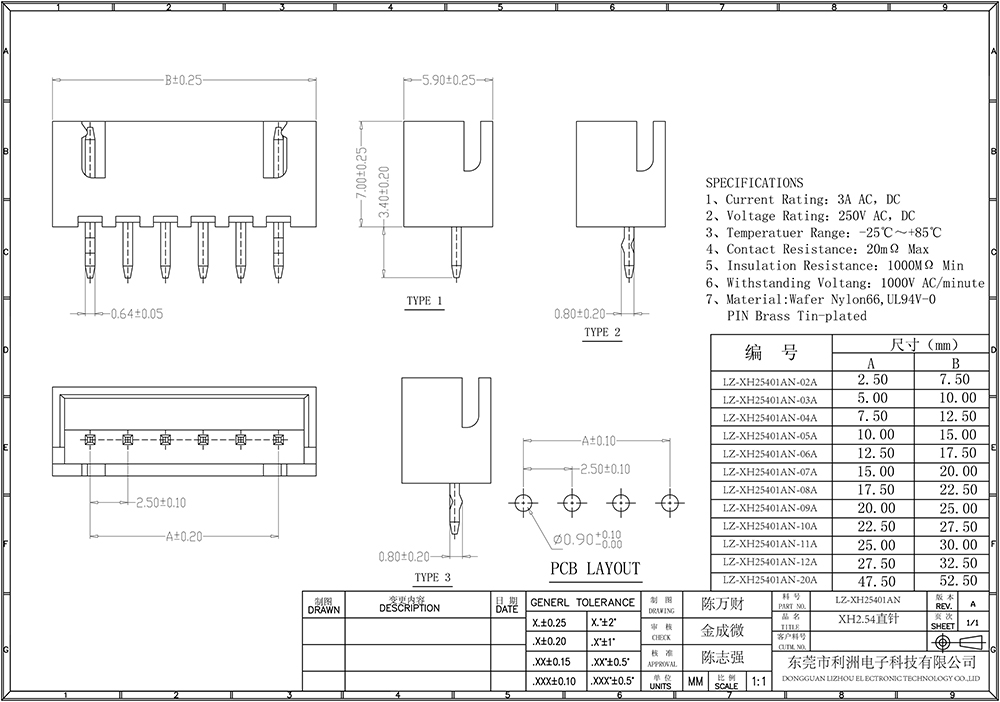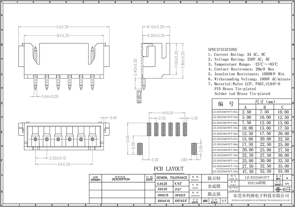• XH2.54mm间距系列