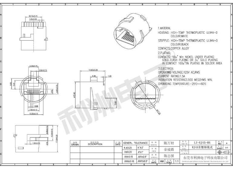 RJ45-全塑防水母头8P焊线式