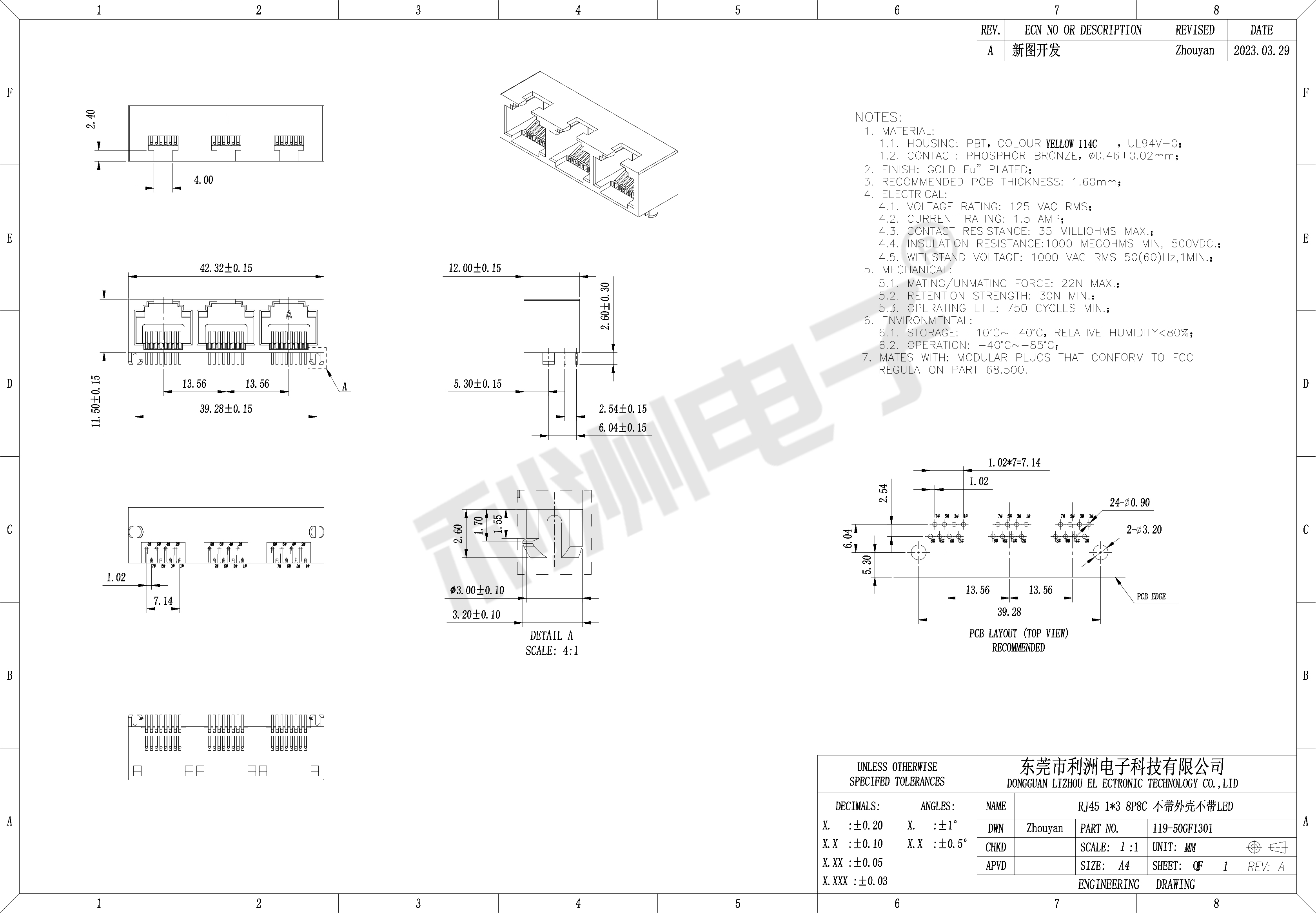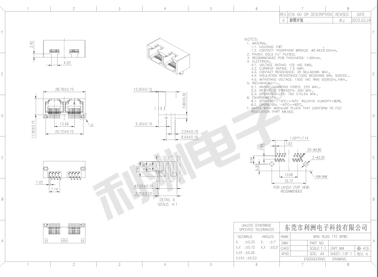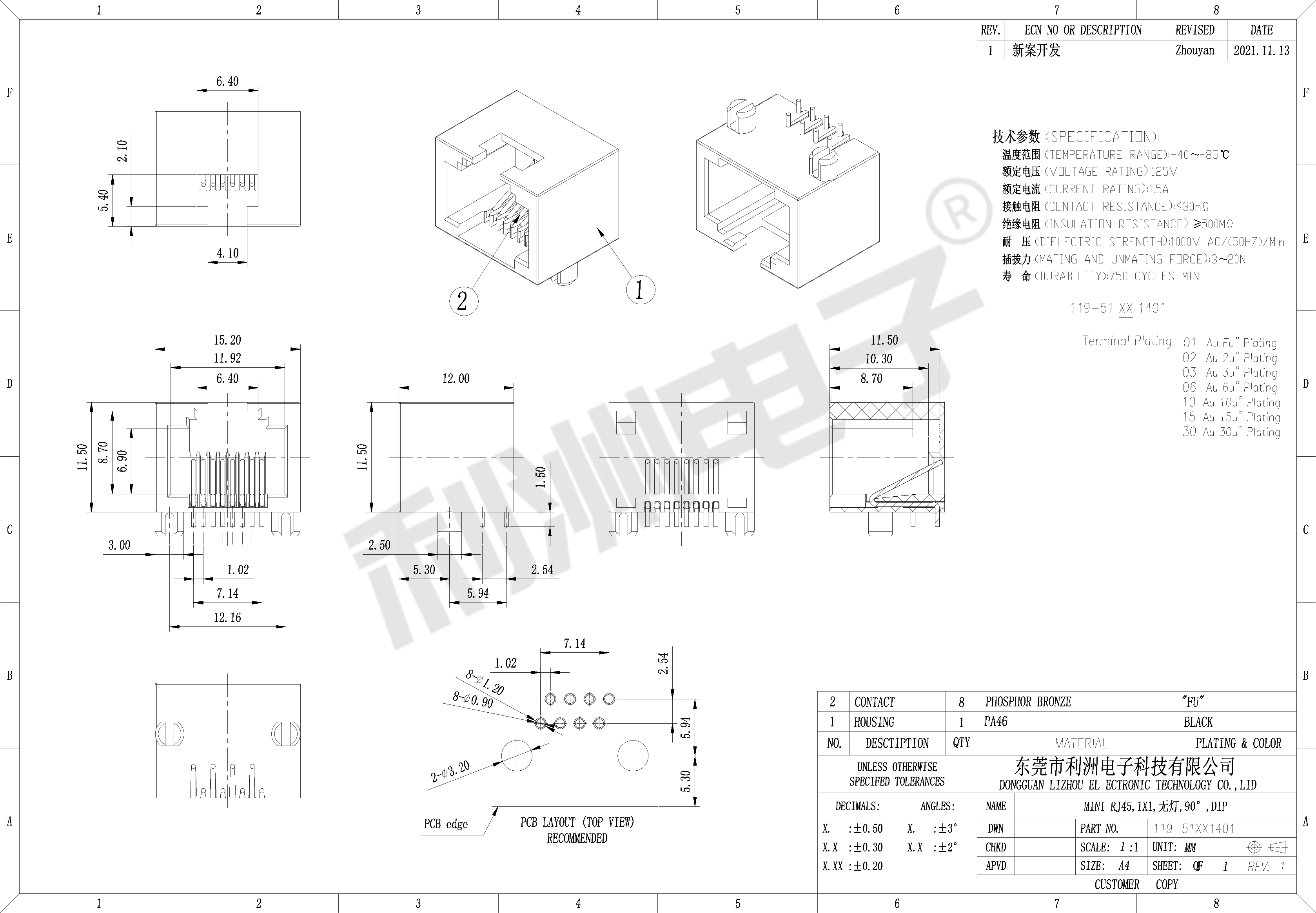 Durrability: 750 Mating Cycles MIN