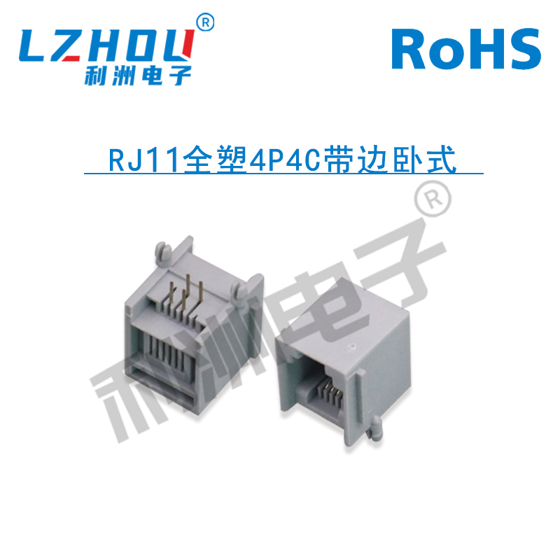 • RJ11全塑4P4C带边卧式