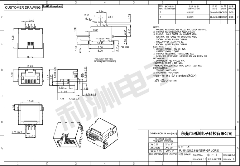 RJ45弯针带屏蔽卧式H=2.7
