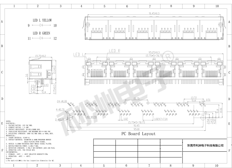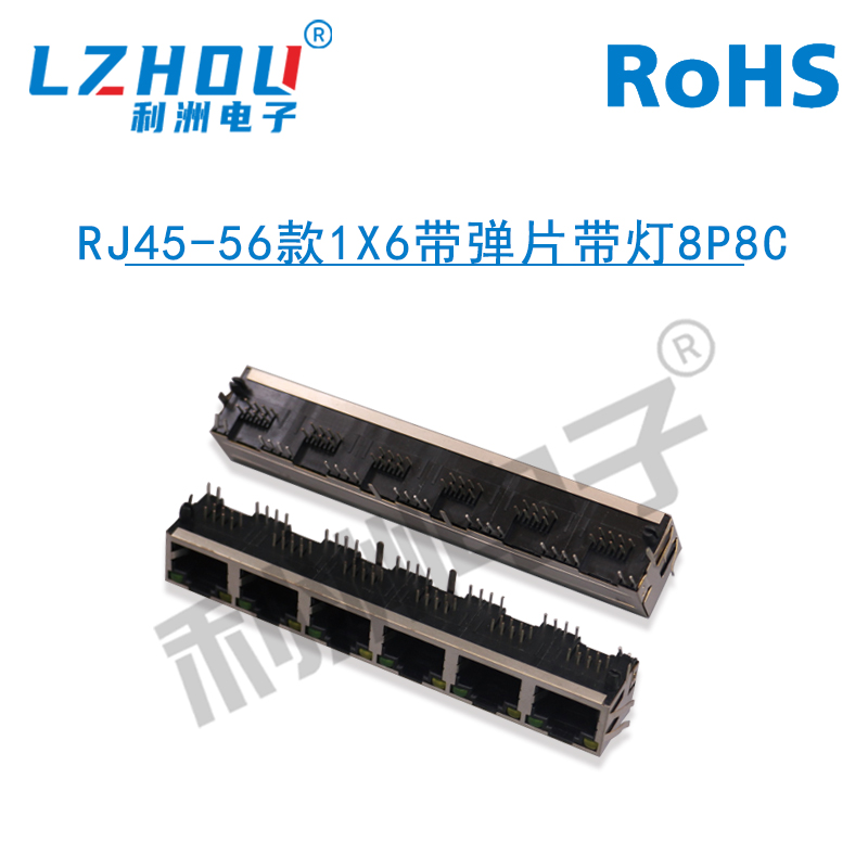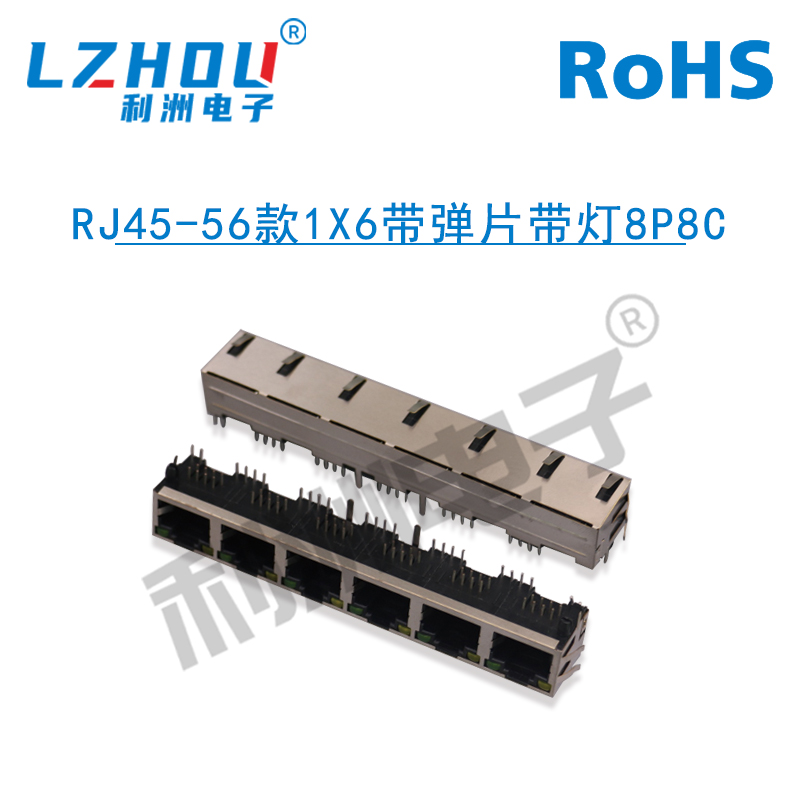 • RJ45-56款1X6带弹片带灯8P8C