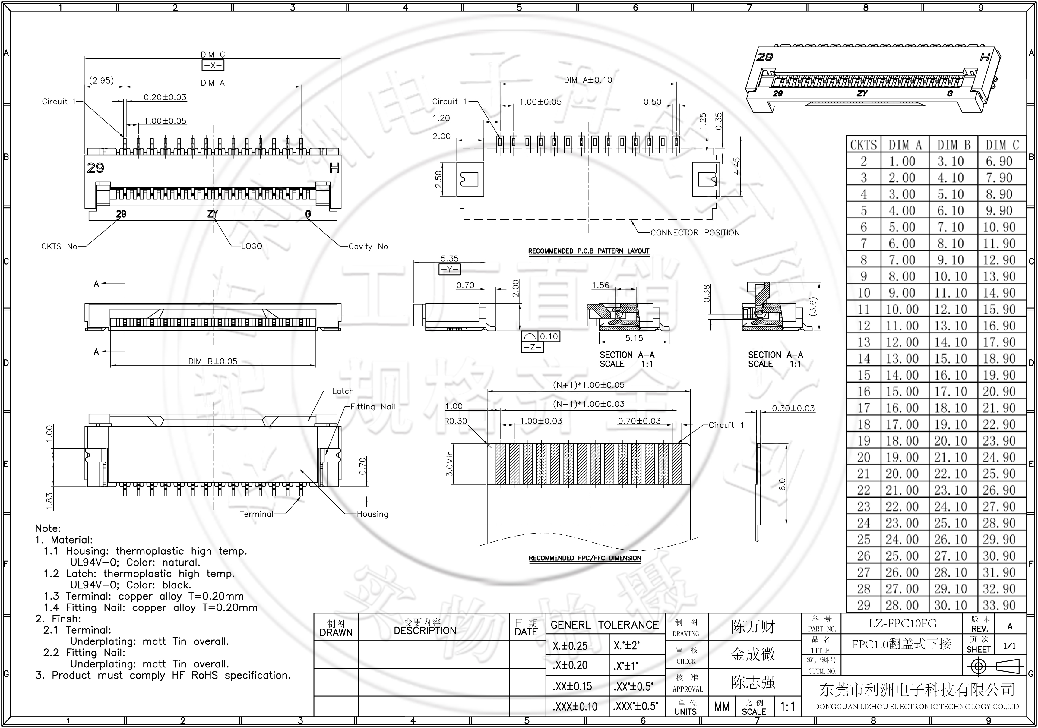 • FPC1.0mm间距翻盖式下接SMT