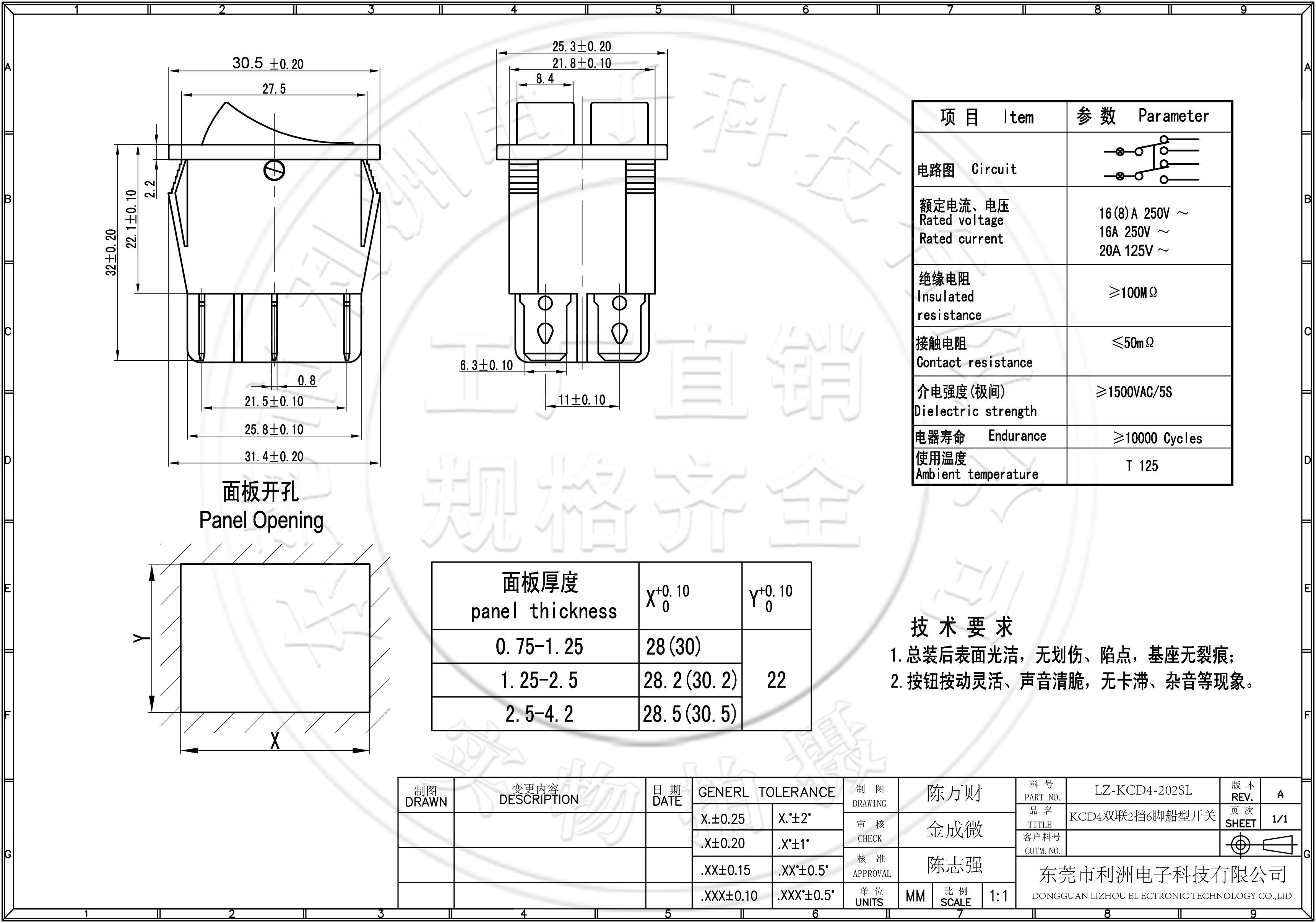 额定电流、电压: 3A 250V 6A 125V