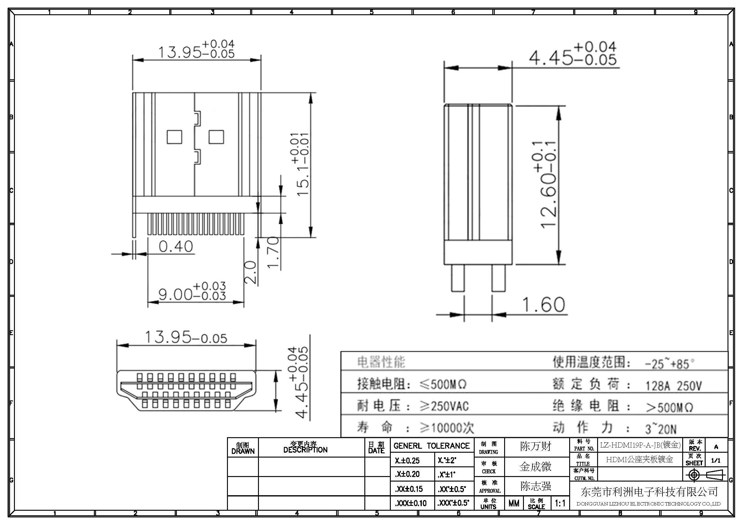 HDMI公座夹板式镀金