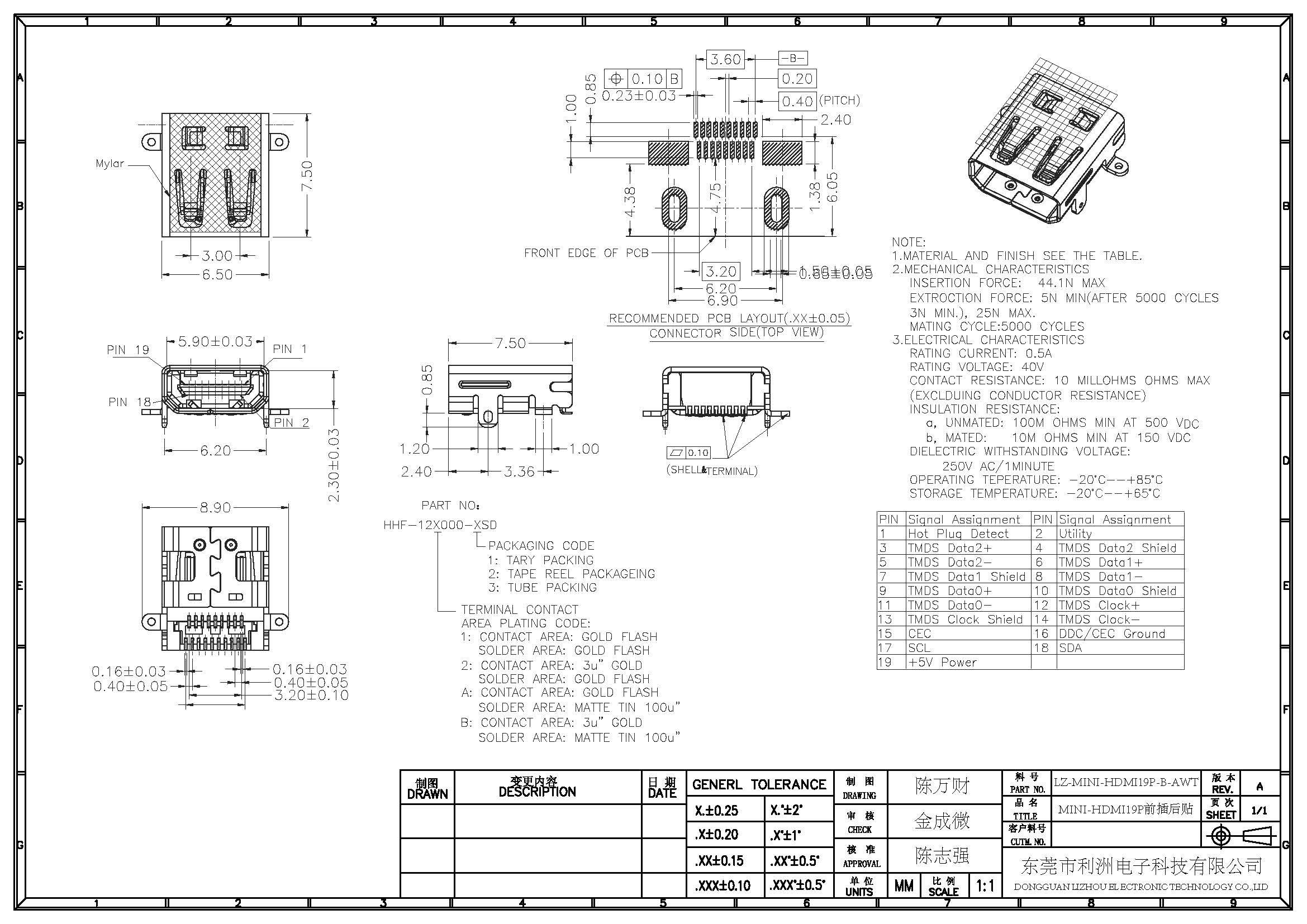 HDMI母座前插后贴