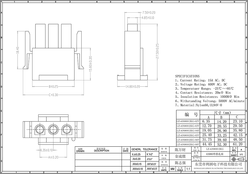 Rated voltage: 600V AC,DC