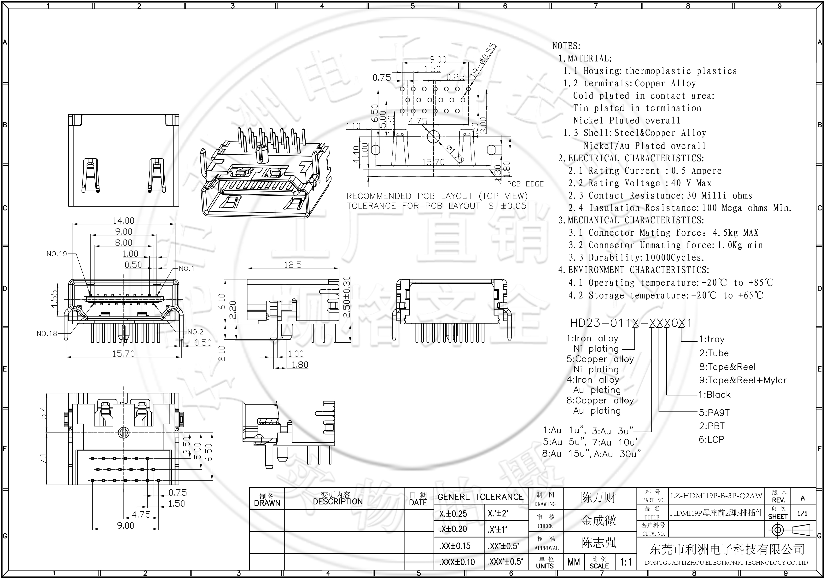 HDMI母座三排针2脚
