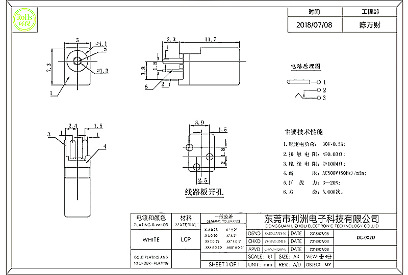 DC-002D-3P立式插脚