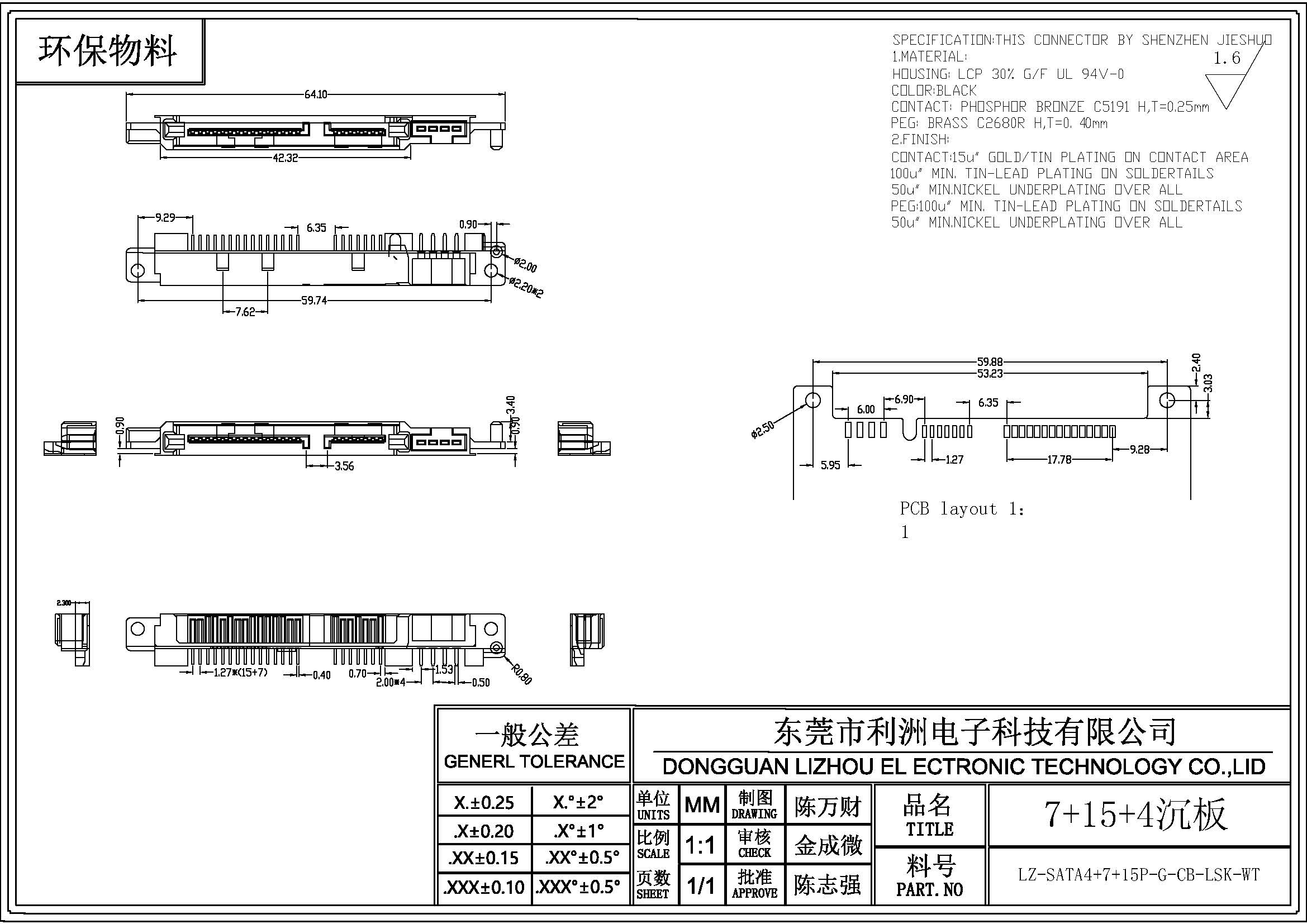 Contact: Phosphor bronze C5191 H,T=0.25mm