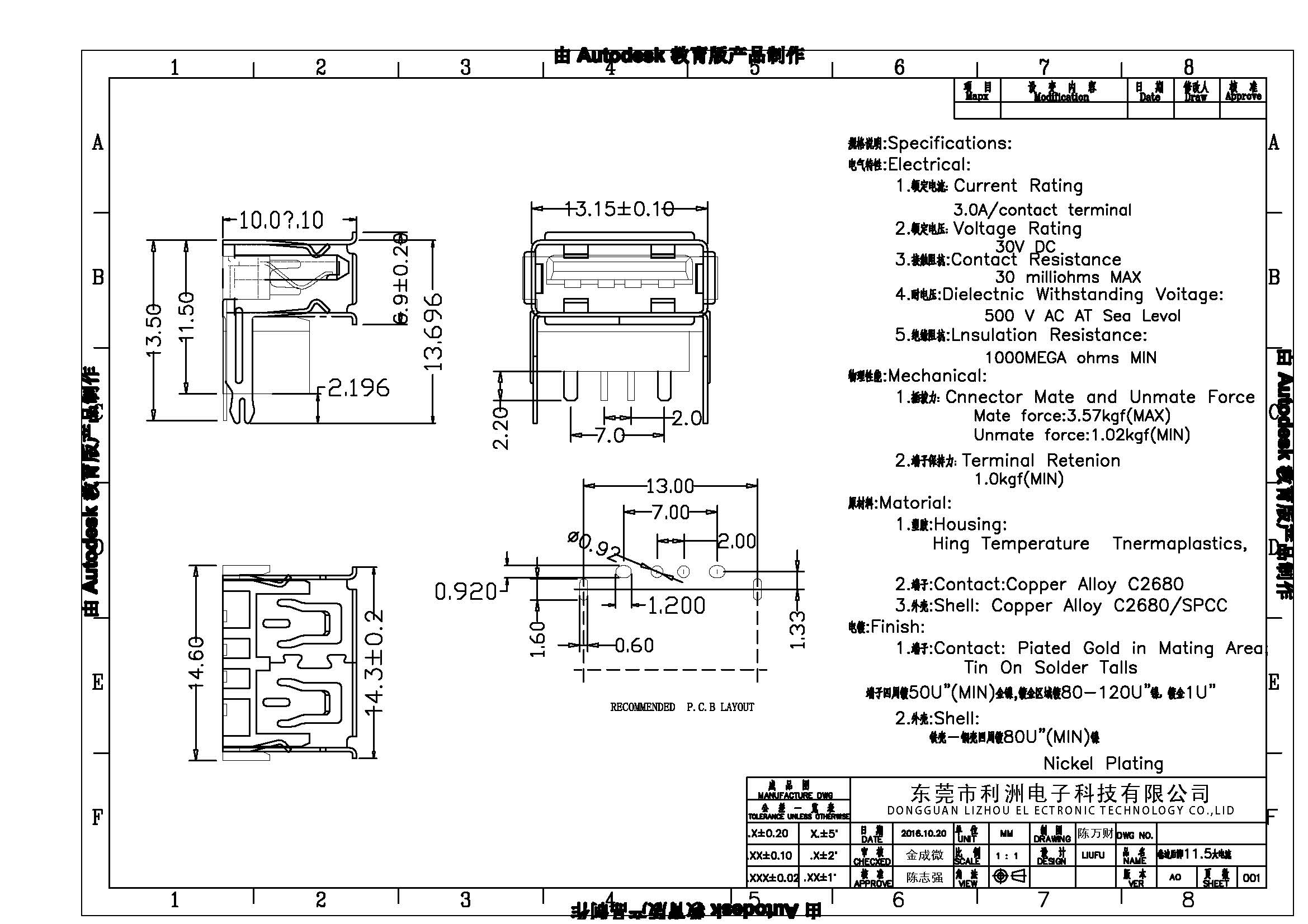 Cnnector Mate and Unmate Force: Mate force:3.57kgf(MAX) Unmate force:1.02kgf(MIN0