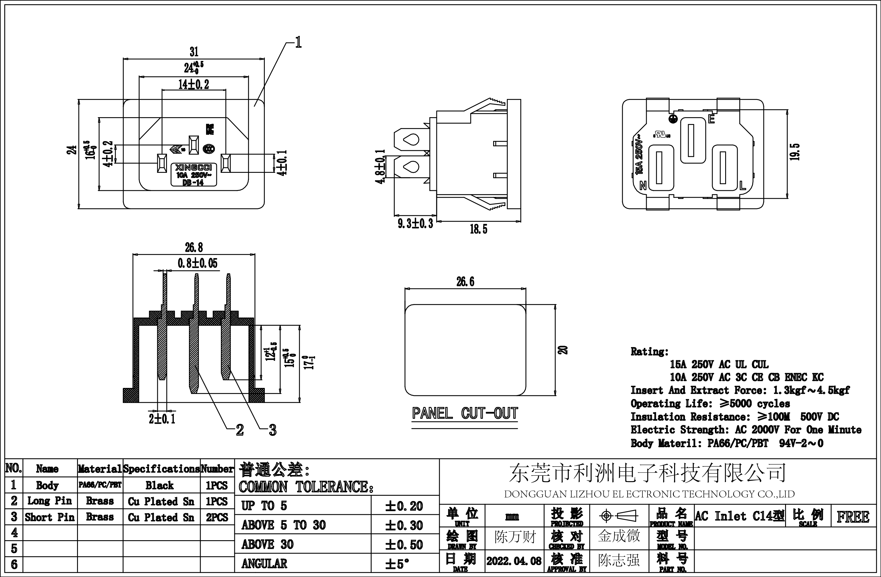 Rating: 15A 250V AC UL CUL 10A 250V AC 3C CE CB ENEC KC