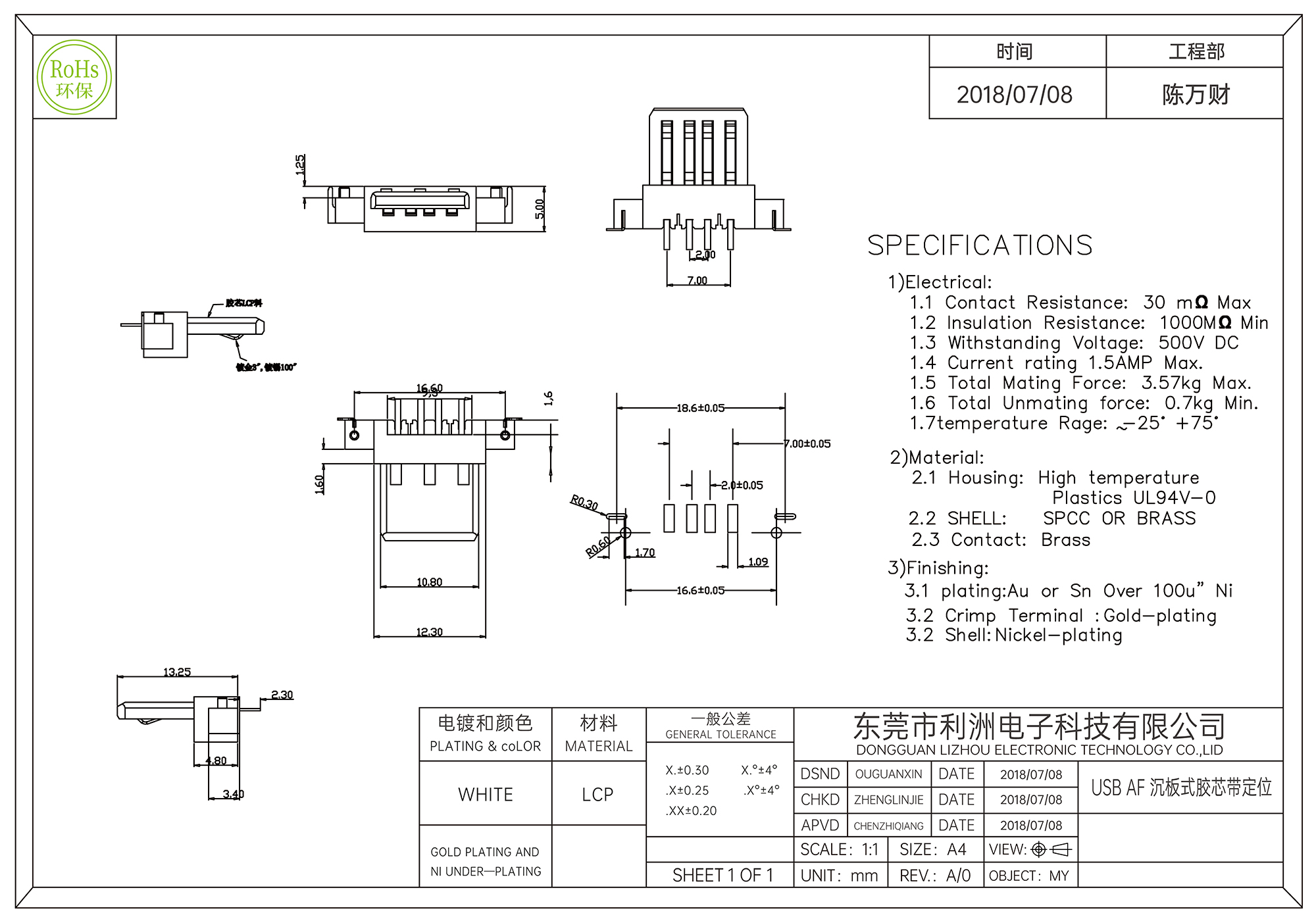 Total Unmating Force: 0.7kg Max.