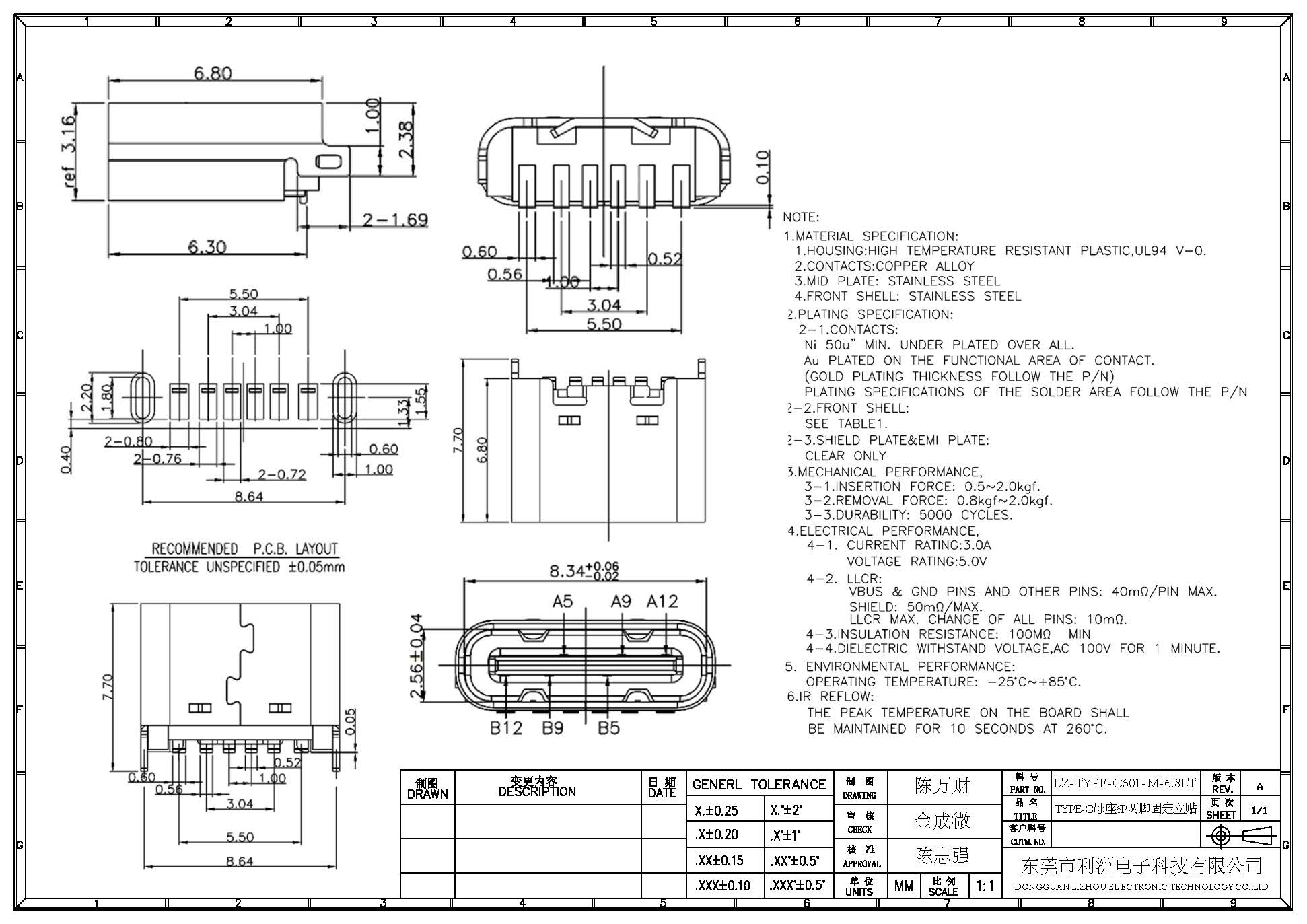 Contacts: Ni 50u" MIN. Under plated over all. Au Plated on the functional area of contact (gold plating thickness follow the P/N) Plating specifications of the solder area follow the P/N)