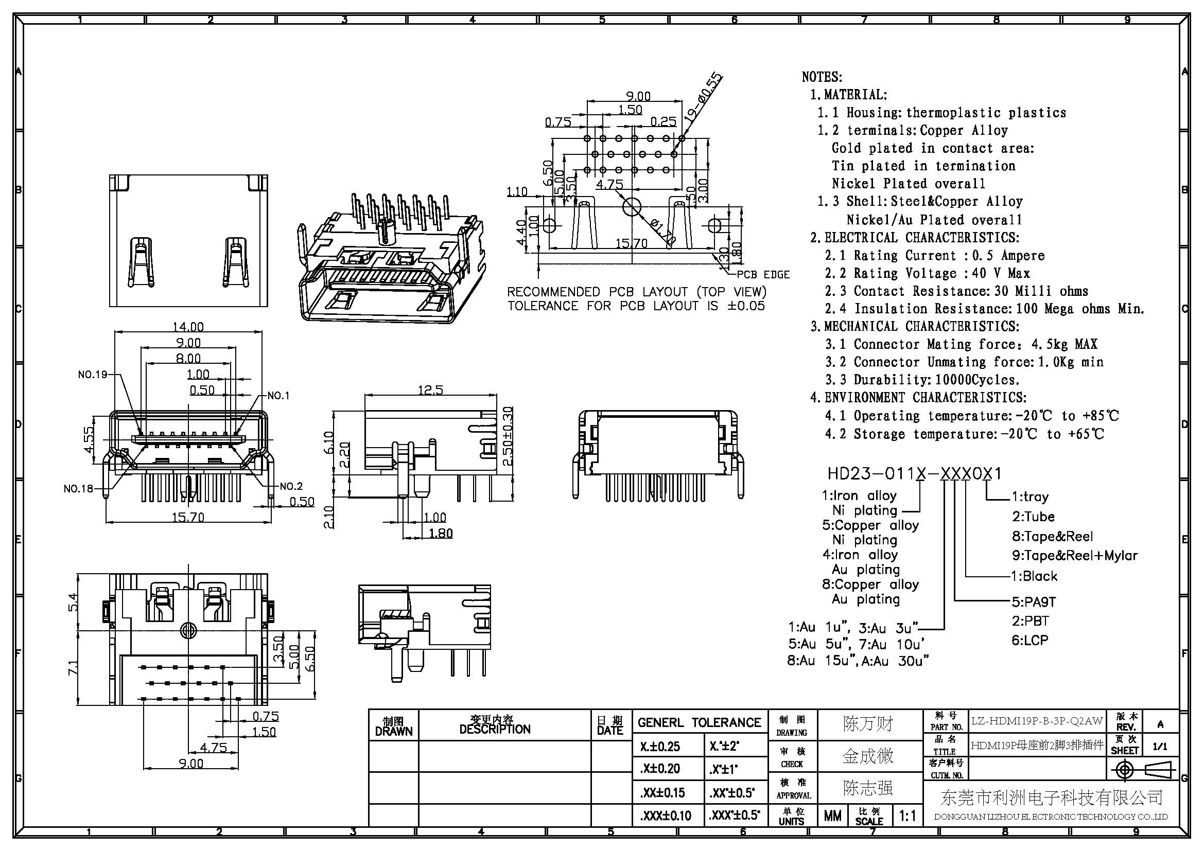 Connector Mating force: 4.5kgf MAX