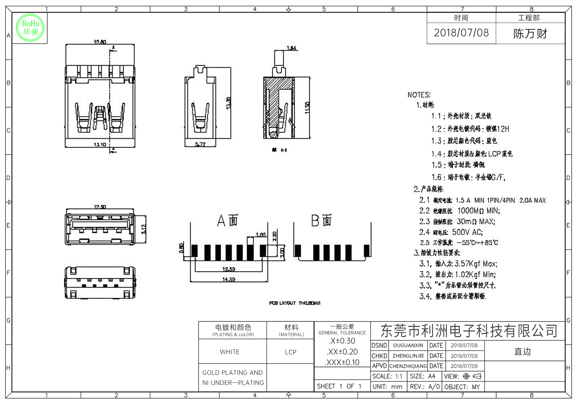 Current rating: 1.5A MIN 1PIN/4PIN 2.0A MAX